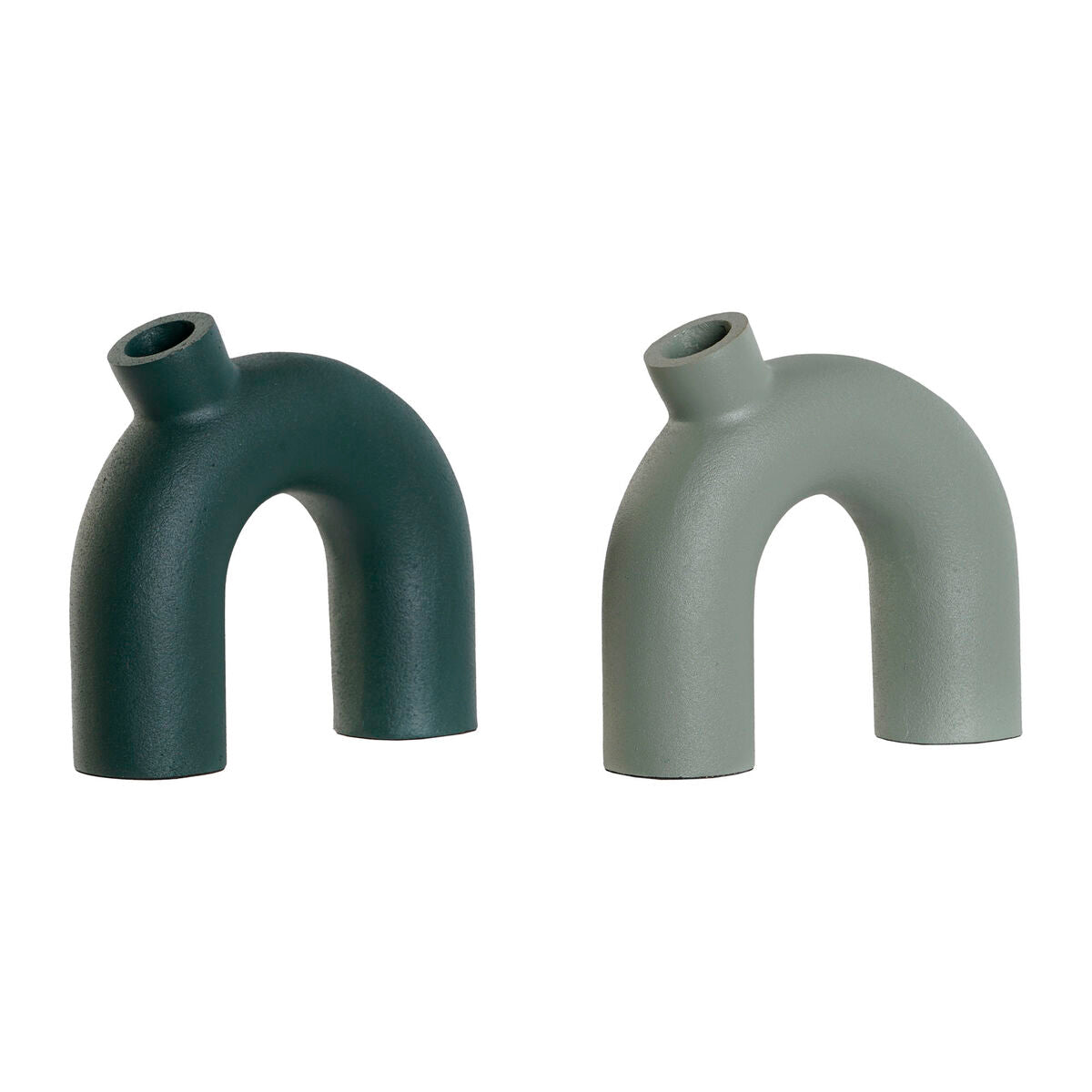 Alumiinimaljakko 2 kpl vihreissä sävyissä, kaarevalla arkkitehtonisella U-muodolla. Mattapintainen pieni maljakko tuo modernin ja hillityn korostuksen pöydälle, hyllylle tai eteiseen. Sopii yksittäisille kukille, ohuille oksille ja kuivakukkiin.