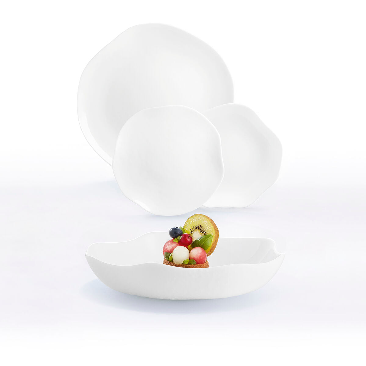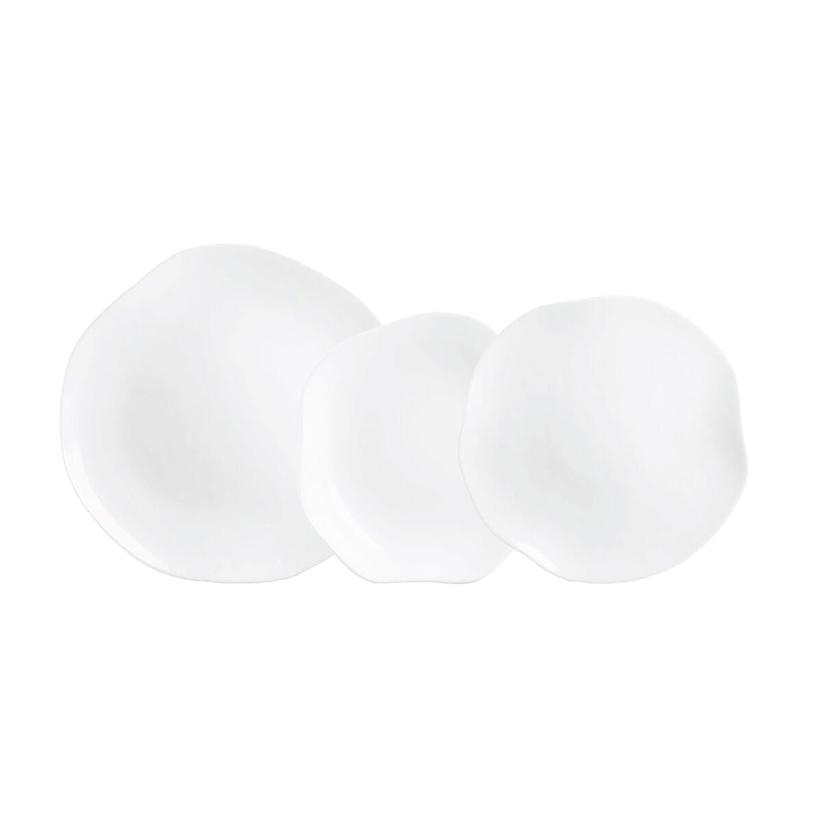 Astiasto 18-osainen valkoinen lasi - 6 syvää lautasta, 6 lautasia & 6 kulhoa