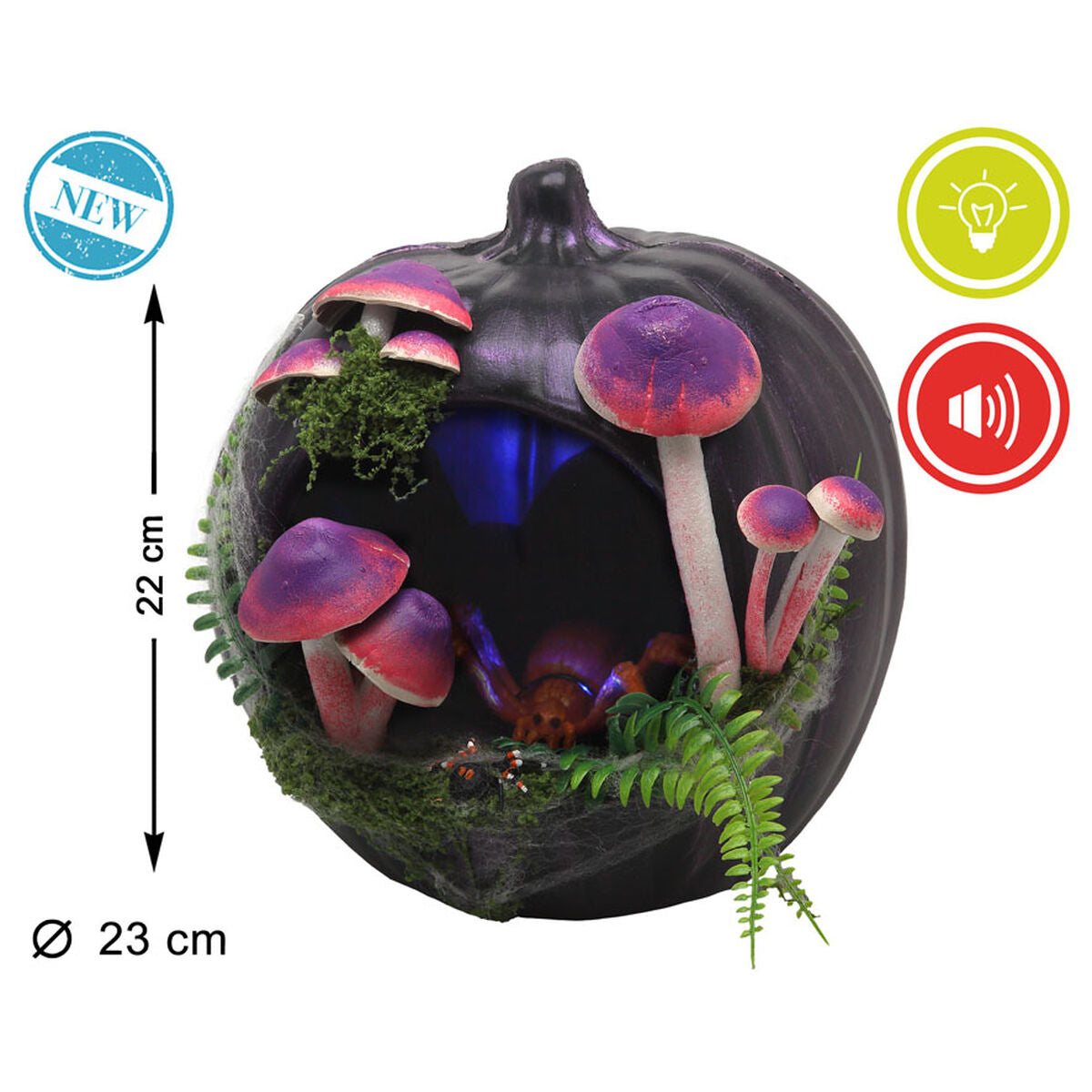 Halloween-koriste valo & ääni 23 x 23 x 22 cm, kurpitsakoriste pöydälle