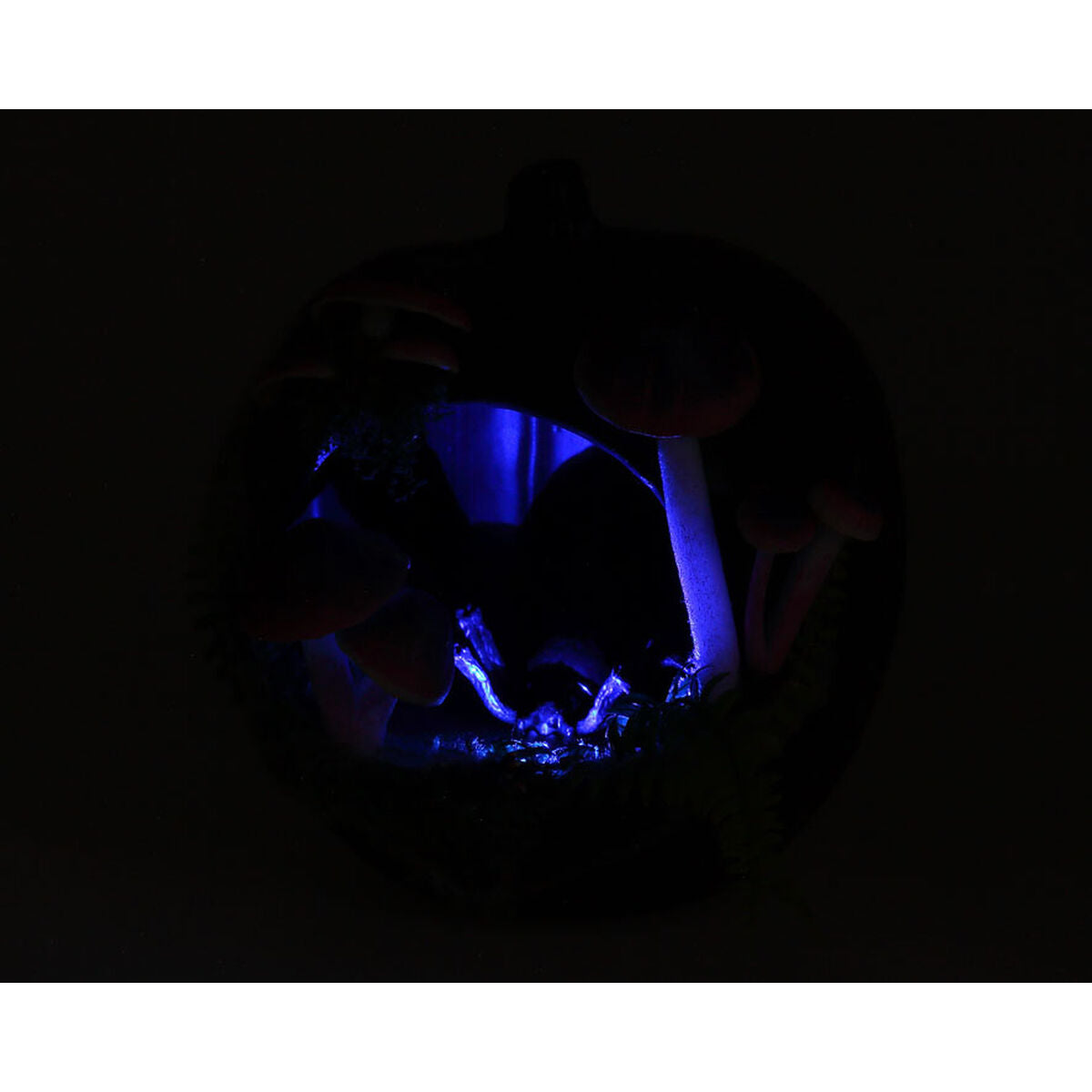 - Kurpitsa-muoto ja yksityiskohdat — kurpitsakoriste, myrkkypullot sekä sieni- ja sammalefektit luovat karhean, luontomaisen ulkonäön.