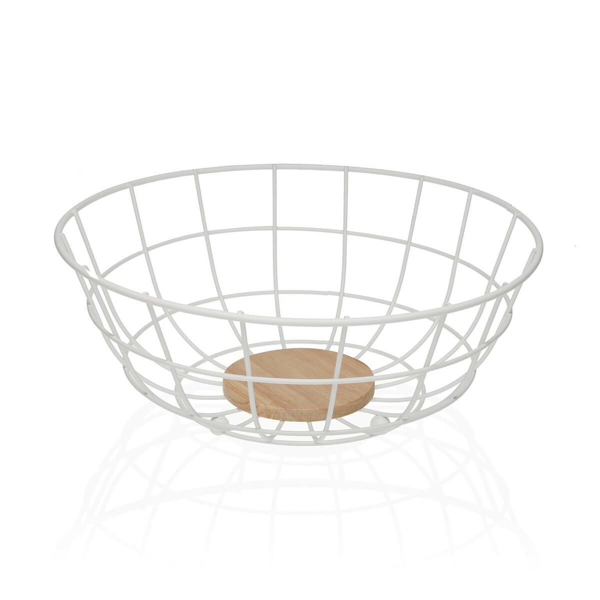 Hedelmäkulho valkoinen, metalliverkko & puupohja 28 x 12 x 28 cm, keittiöön