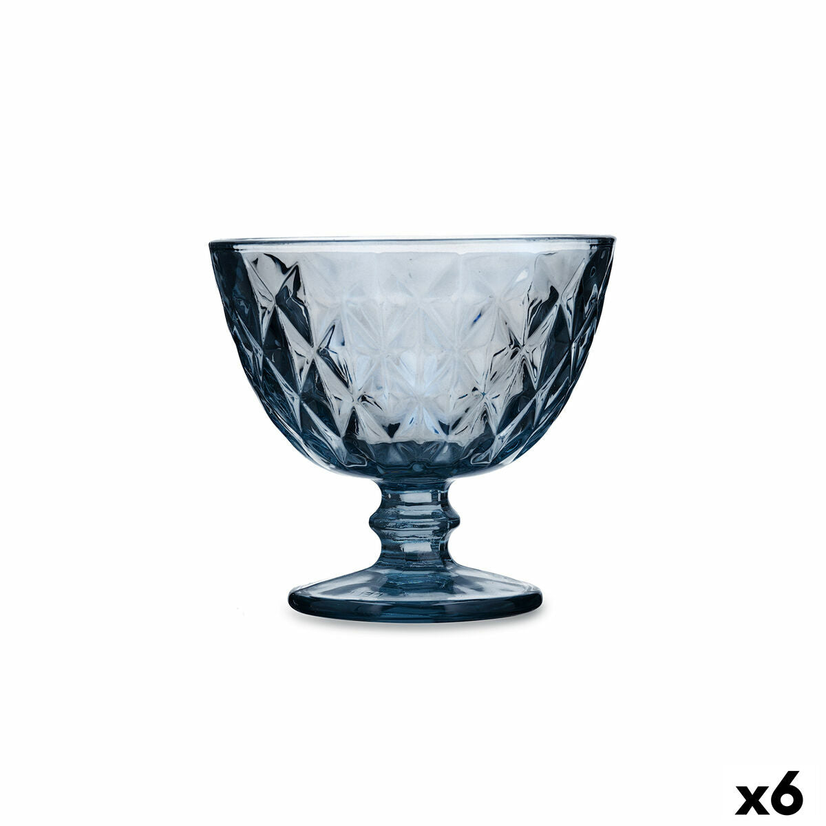 Jalallinen ja kuvioitu jäätelölasi & pirtelölasi 300 ml, myyntipakkaus 6 kpl. Sininen lasi tuo näyttävyyttä tarjoiluun ja sopii niin jäätelölle, pirtelöille kuin jälkiruoillekin. Astianpesukoneen kestävä rakenne ja jääkaappiin sopiva muoto tekevät arjesta helppoa.