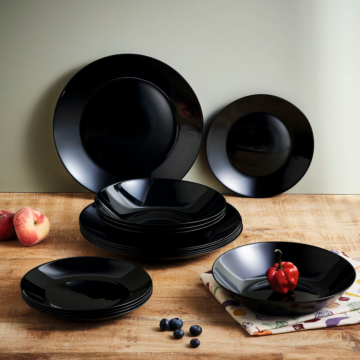 Jälkiruokalautanen Ø 18 cm musta lasi, 12 kpl lautassetti Luminarc
