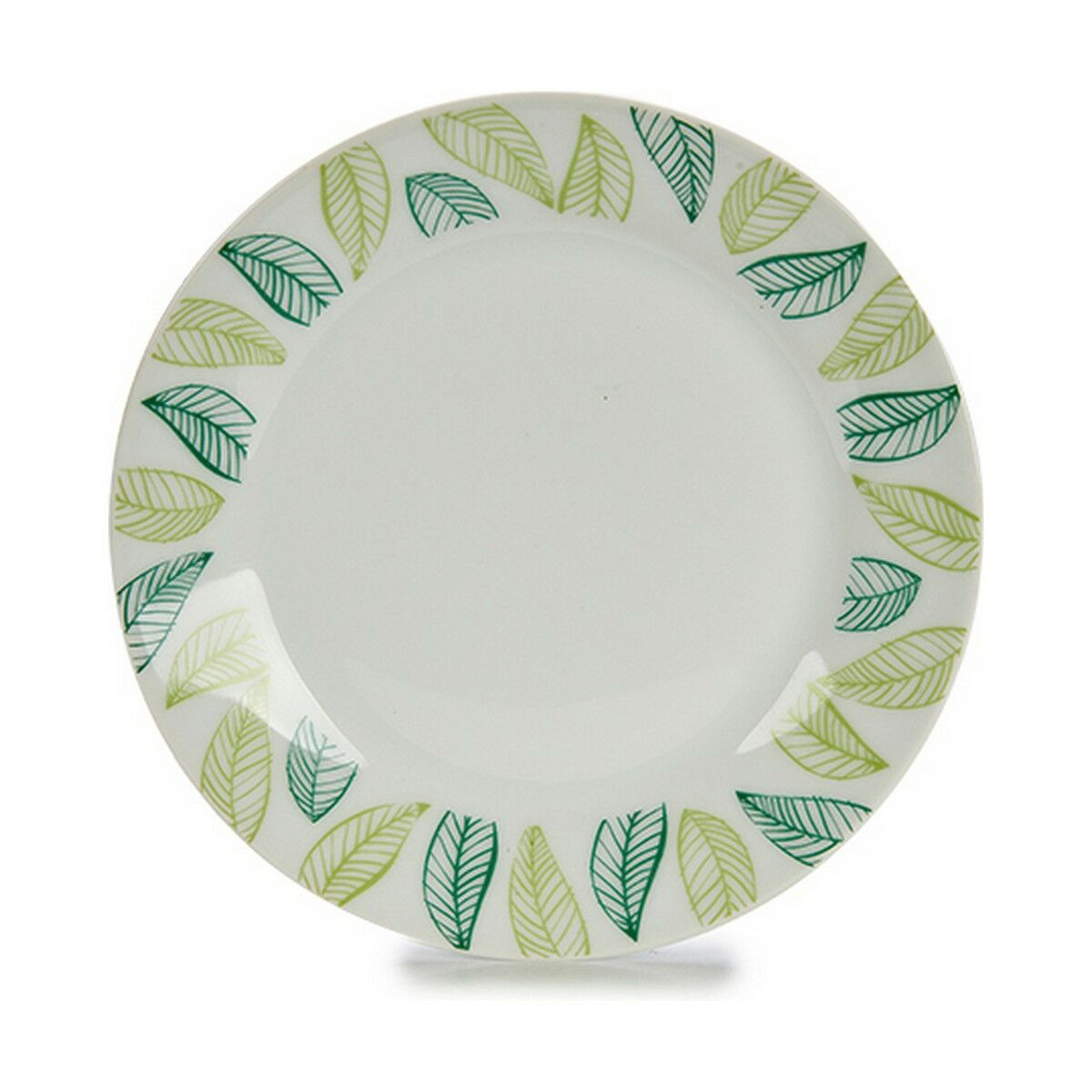 Jälkiruokalautanen Ø19 cm posliini, 10 kpl - valkoinen & vihreä lehti astiasto