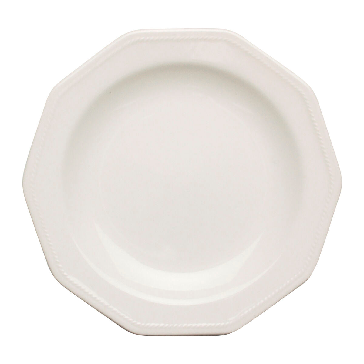 Tyylikäs valkoinen jälkiruokalautanen, halkaisija Ø 20,5 cm. Valmistettu kestävästä keramiikasta/posliinista ja myydään 6 kappaleen pakkauksessa. Selkeä muotoilu ja kevyesti monikulmainen reuna sopivat sekä arkeen että juhlaan.