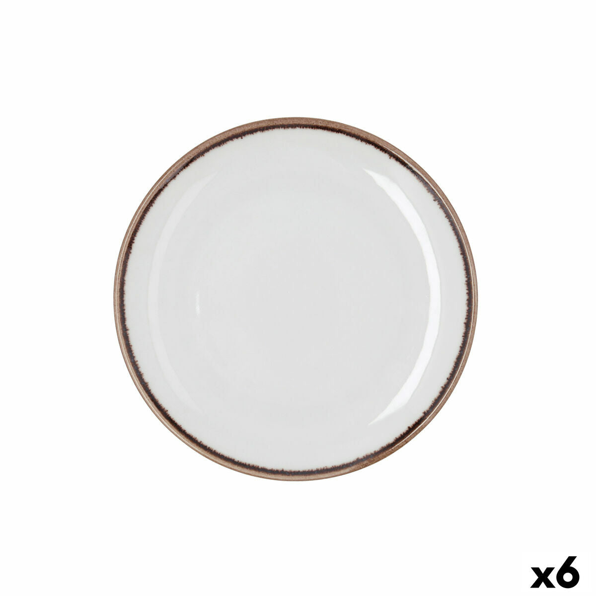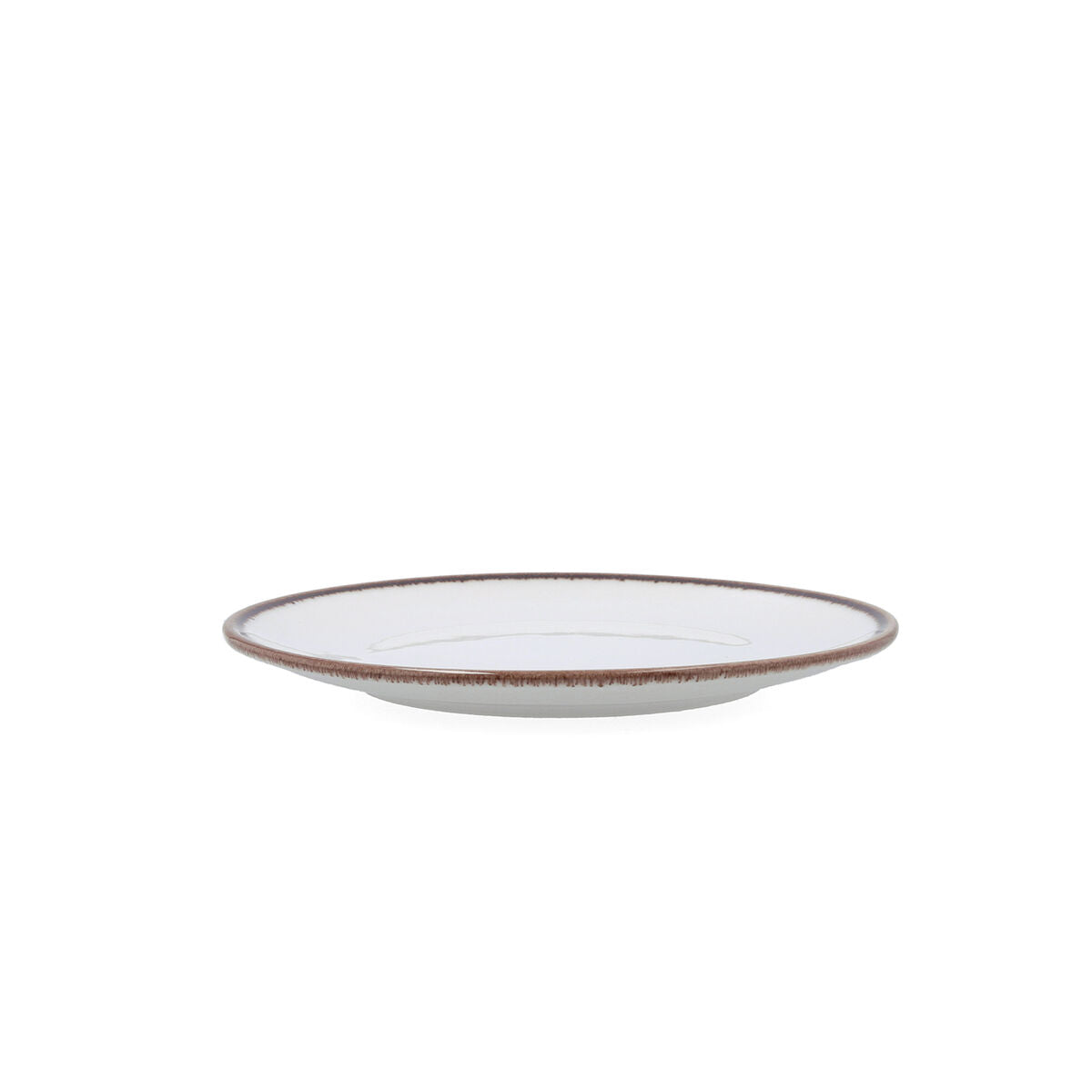 Klassinen keramiikkainen jälkiruokalautanen 6 kpl setissä. Ø 21 cm levyinen lautanen sopii leivoksille, jälkiruoille ja pieniin tarjoiluihin. Valkoinen lasite yhdistettynä rustiikkiseen ruskeaan reunukseen luo lämmintä ja ajattoman kattauksen.