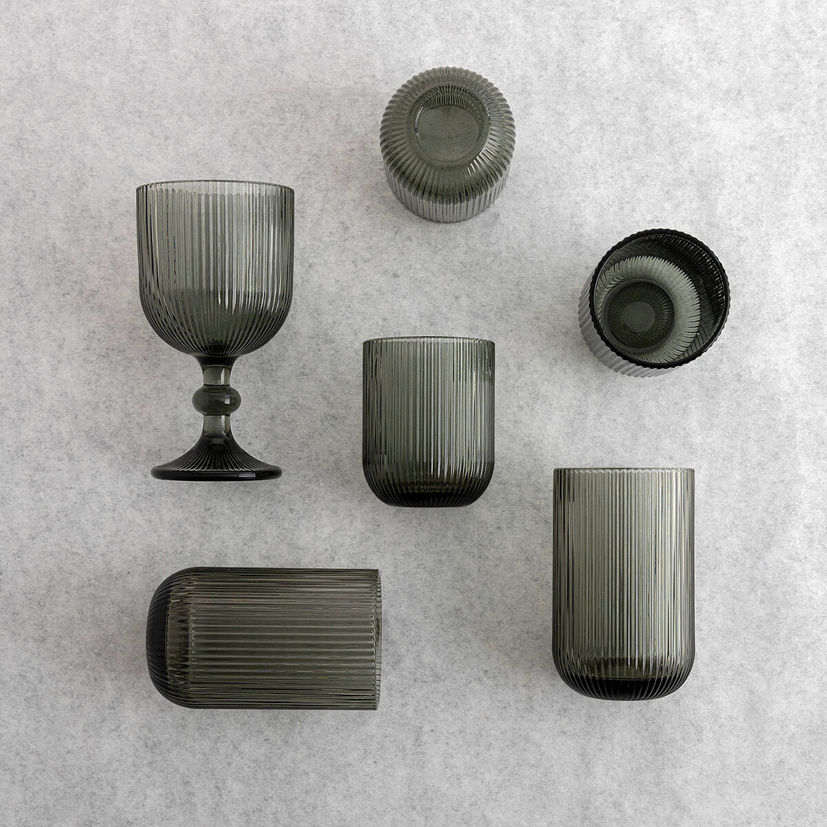 Juomalasit 280 ml, 6 kpl - moderni harmaa uritettu lasi, tiskikoneeseen sopiva