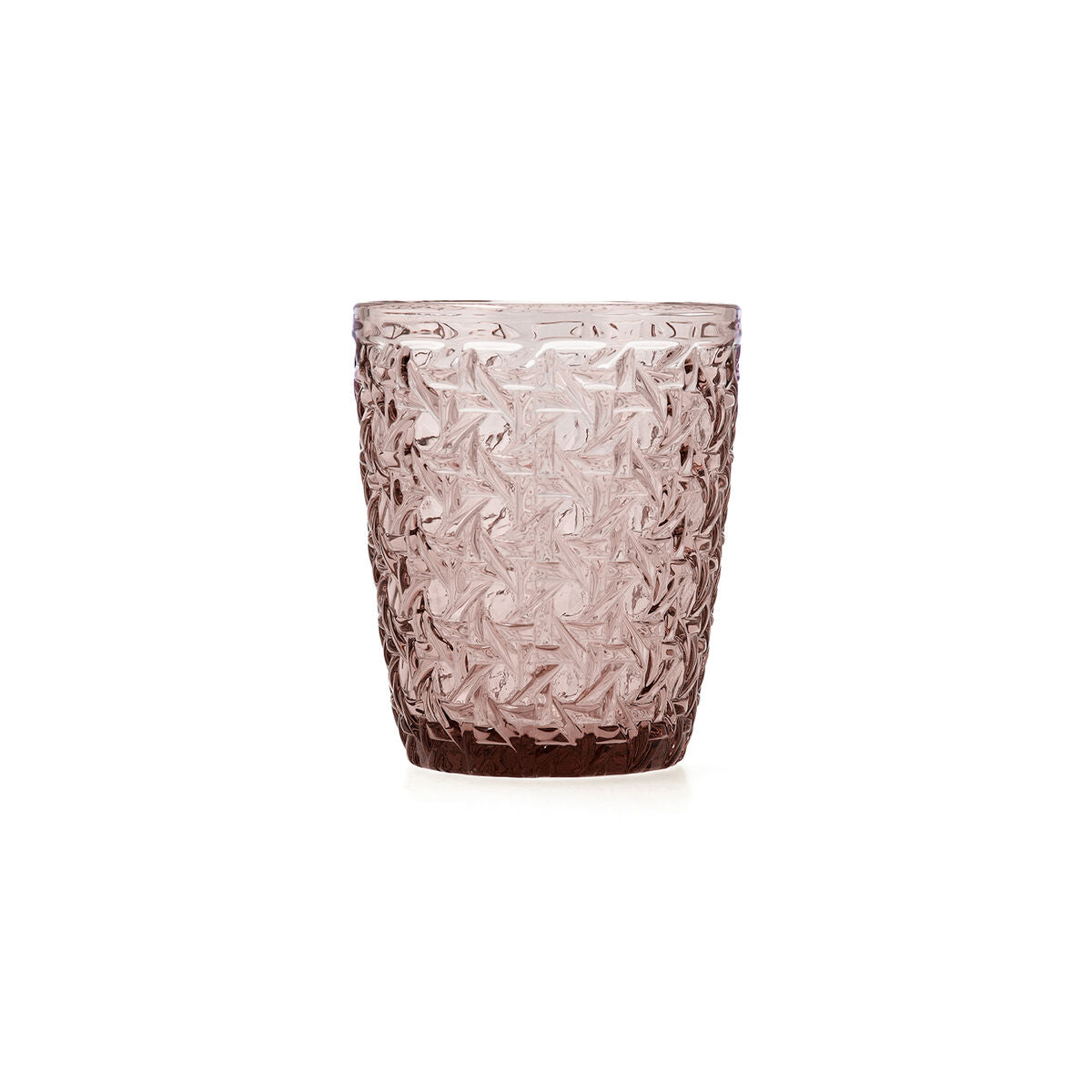 6-osainen juomalasisetti, jokaisen lasin tilavuus 300 ml. Vaaleanpunainen ja kuvioitu lasipinta antaa kattaukseen huolitellun, hieman retrohenkisen ilmeen. Sopii vesilasiksi, mehulasiksi tai arjen ja juhlien juomalaseiksi.