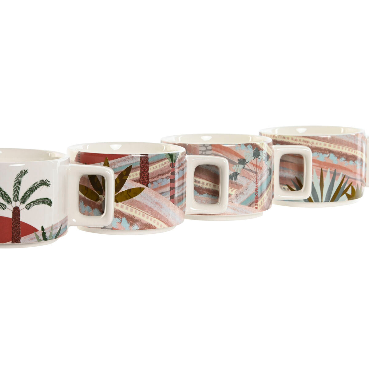 Monivärinen kahvikuppisetti dolomiitista ja bambusta. Selkeä muotoilu sopii arkeen ja tarjoiluun.