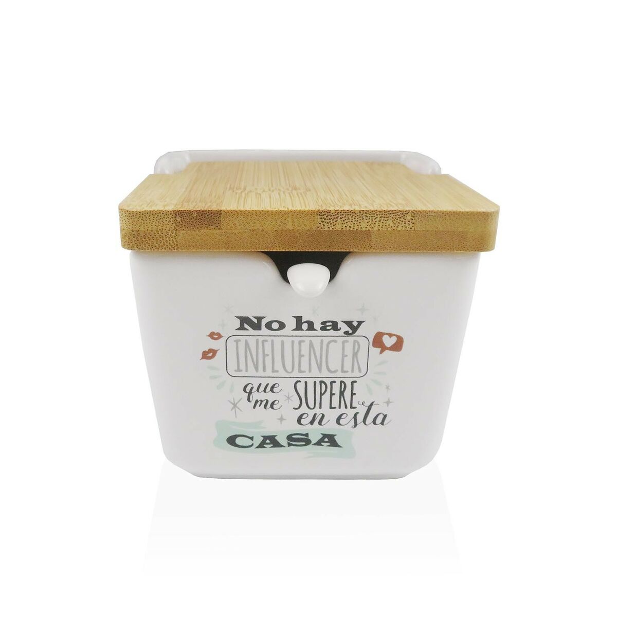 Sokeriastia keraaminen, bambukansi 8,8×8,5×8,8 cm keittiöön & tarjoiluun