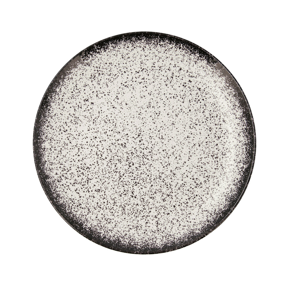 Tyylikäs keramiikkalautanen ø 31 cm, mustavalkoisella pilkullisella pinnalla ja tummalla reunalla. Pakkaus sisältää 6 kappaleen setin, joka sopii arjen kattaukseen, juhlahetkiin ja ravintolakäyttöön.