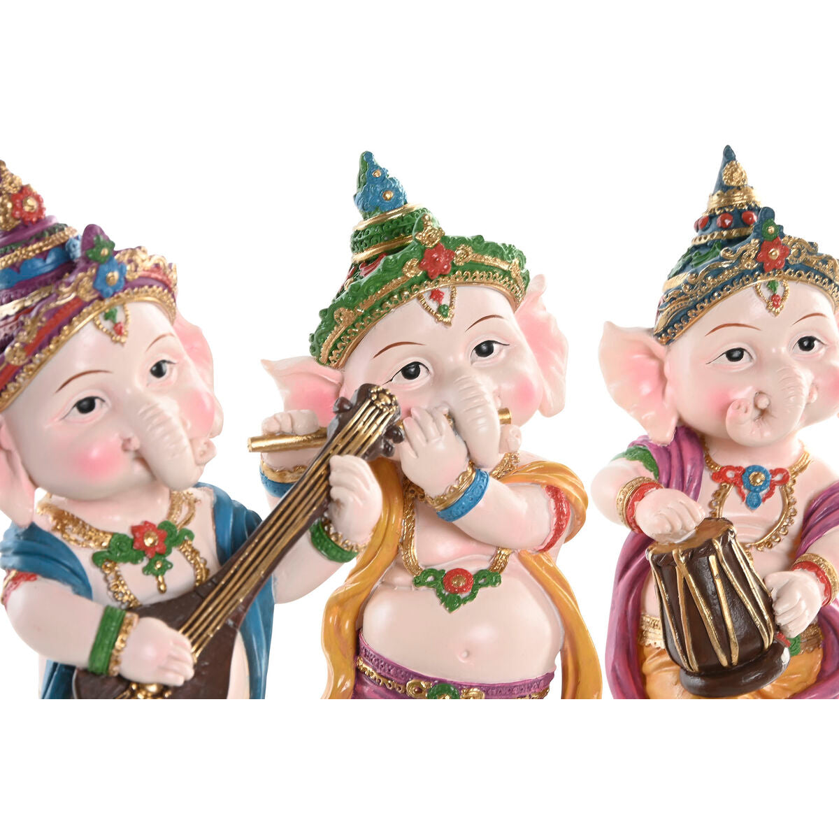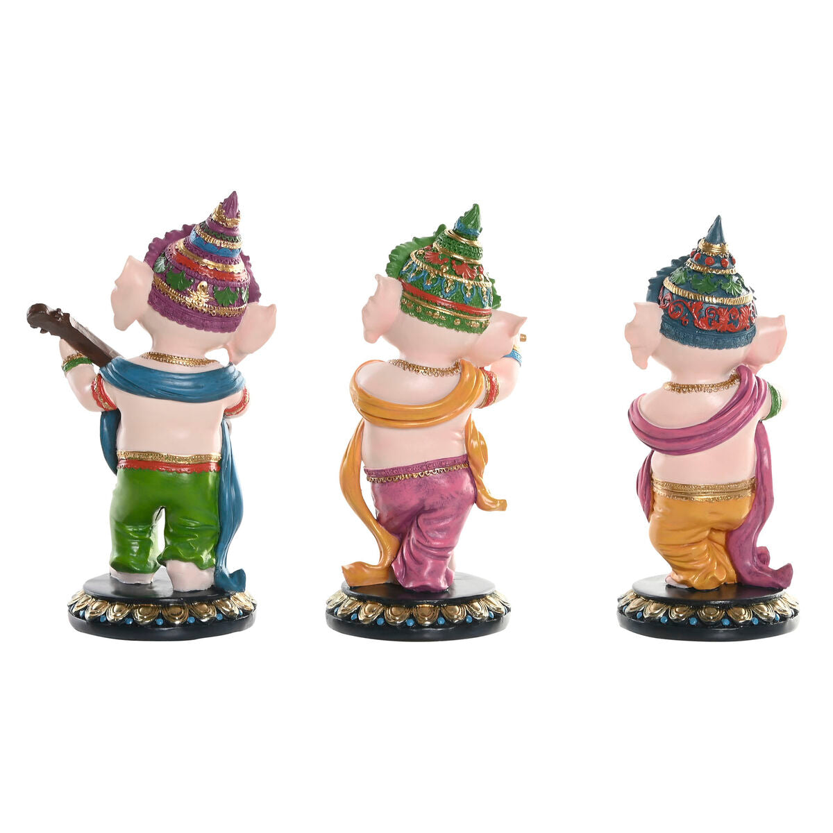 Koristehahmo 3 kpl, monivärinen intialainen musiikkihahmo resiinistä 9x9x20 cm