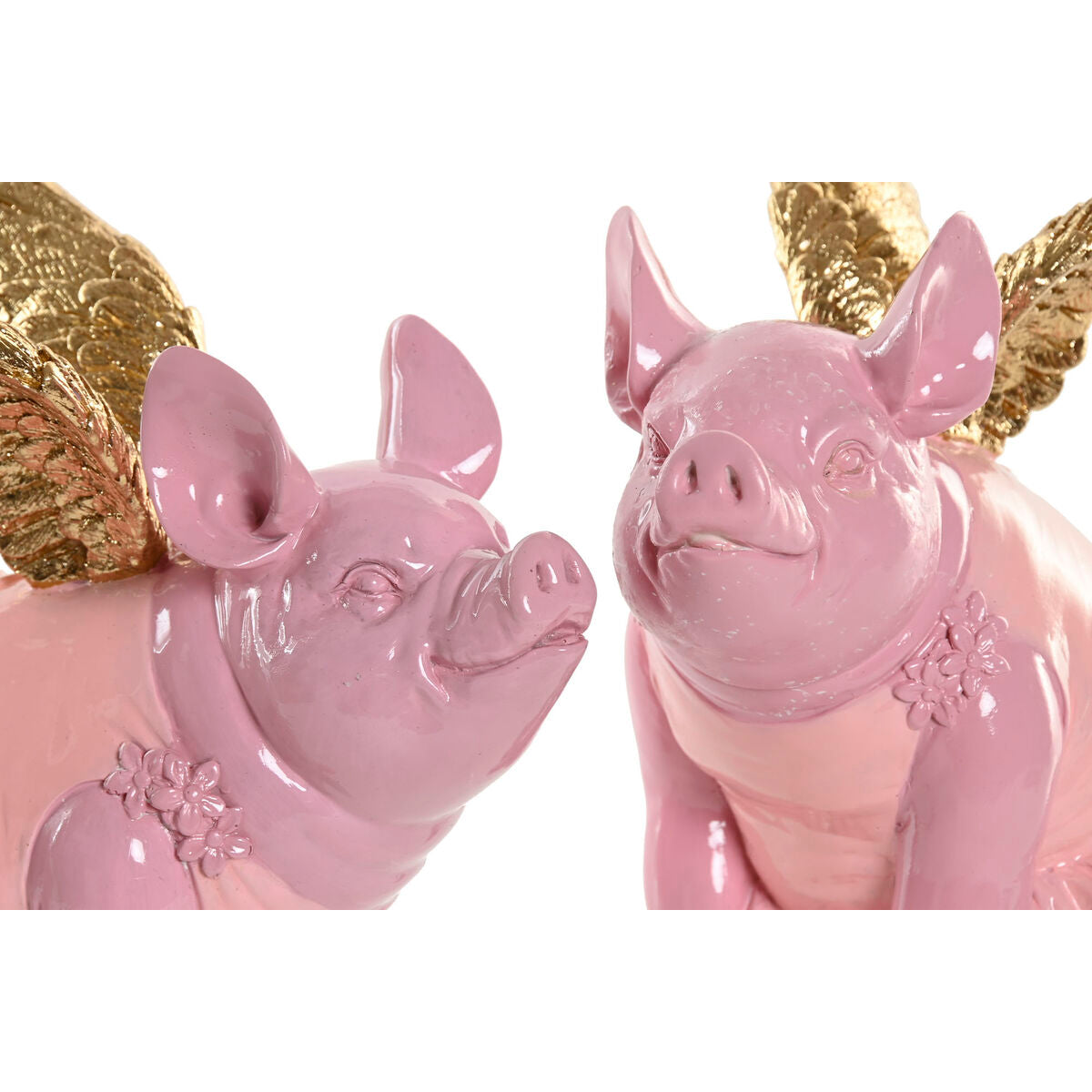 Koristepossut 2 kpl, vaaleanpunainen resiini, kultasiivet, 19×11×17 cm