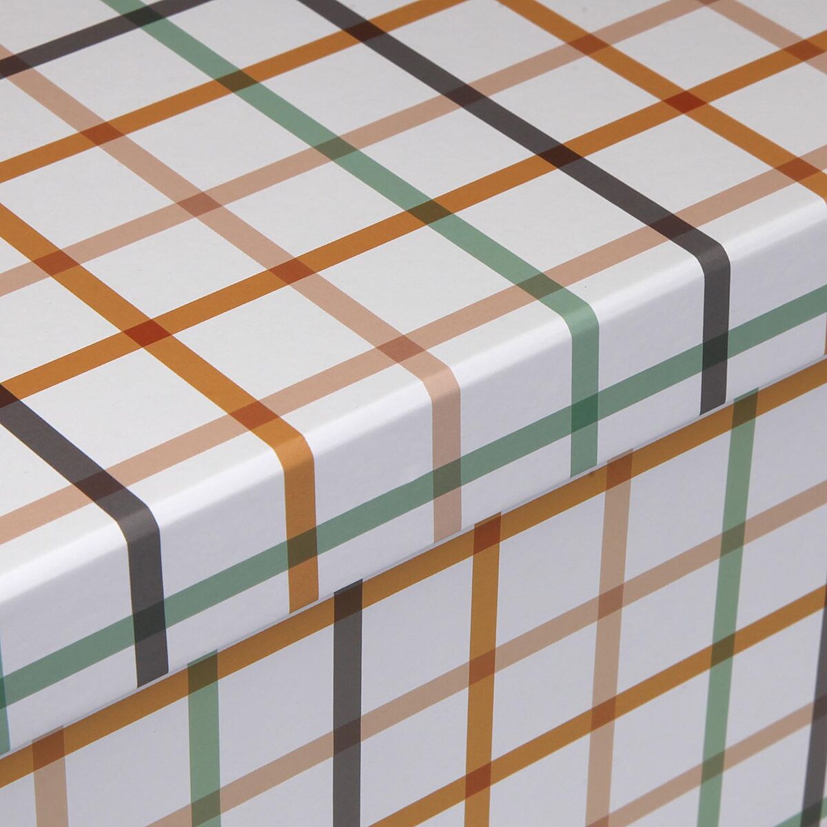Koristerasiasetti, 15 kpl kartonkilaatikoita ruudullisella monivärikuosilla. Eri kokoiset, pinottavat laatikot sopivat kodin säilytykseen, lahjapakkauksiin ja järjestelyyn.