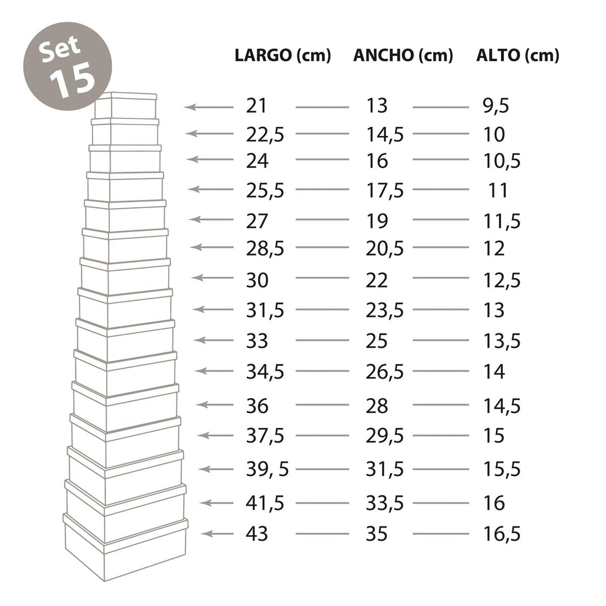 Koristerasiasetti, jossa 15 kartonkista säilytyslaatikkoa eri kokoisina. Kuvioitu, monivärinen ulkonäkö tuo koristeellisuutta ja toimivuutta kodin järjestämiseen ja lahjapakkaukseen.