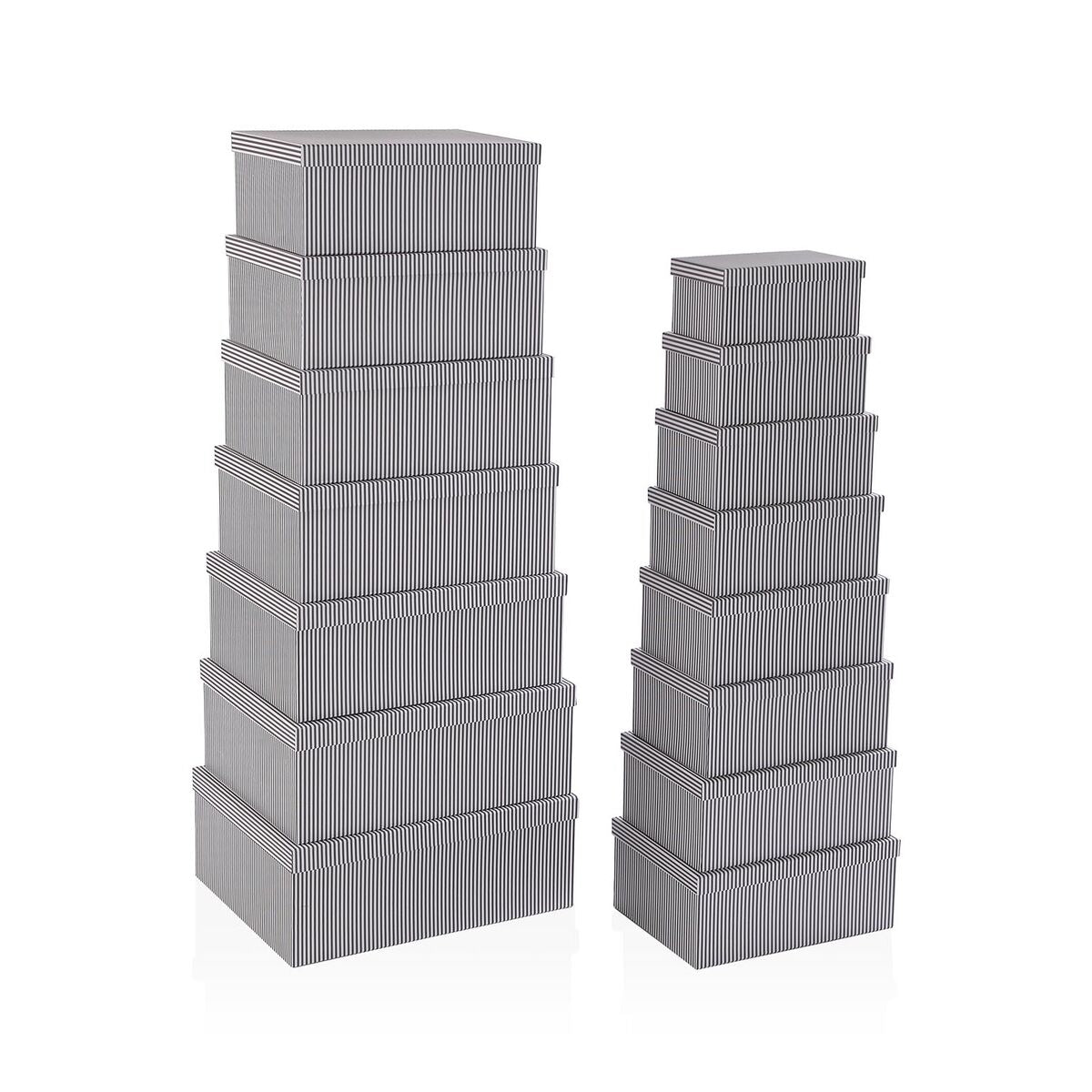 Koristerasiasetti 15 kpl, harmaa raita-kartonki, erikokoiset säilytyslaatikot