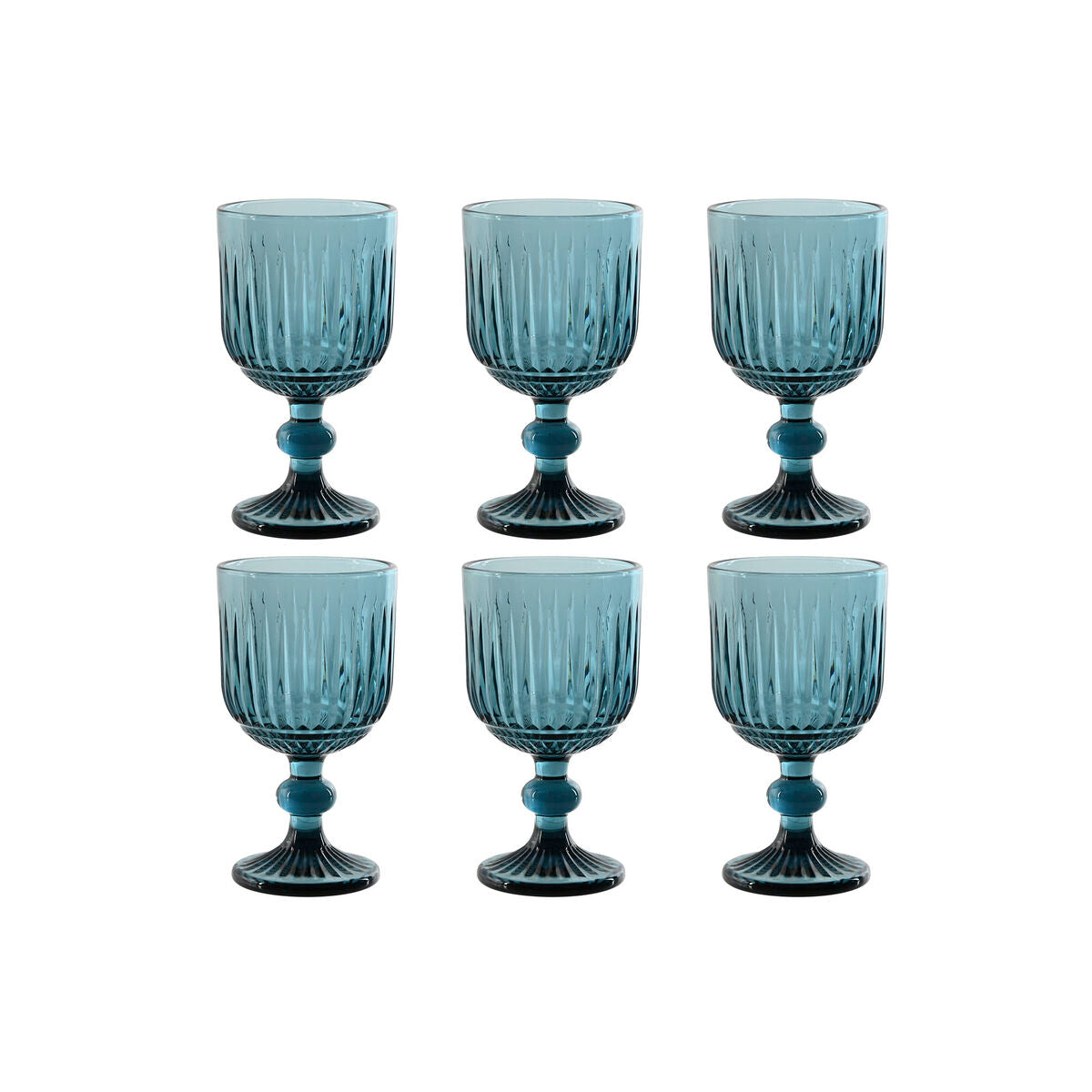 Kristallilasit 6 kpl, sininen 8 x 8 x 14,5 cm - jalallinen juomalasi arkeen