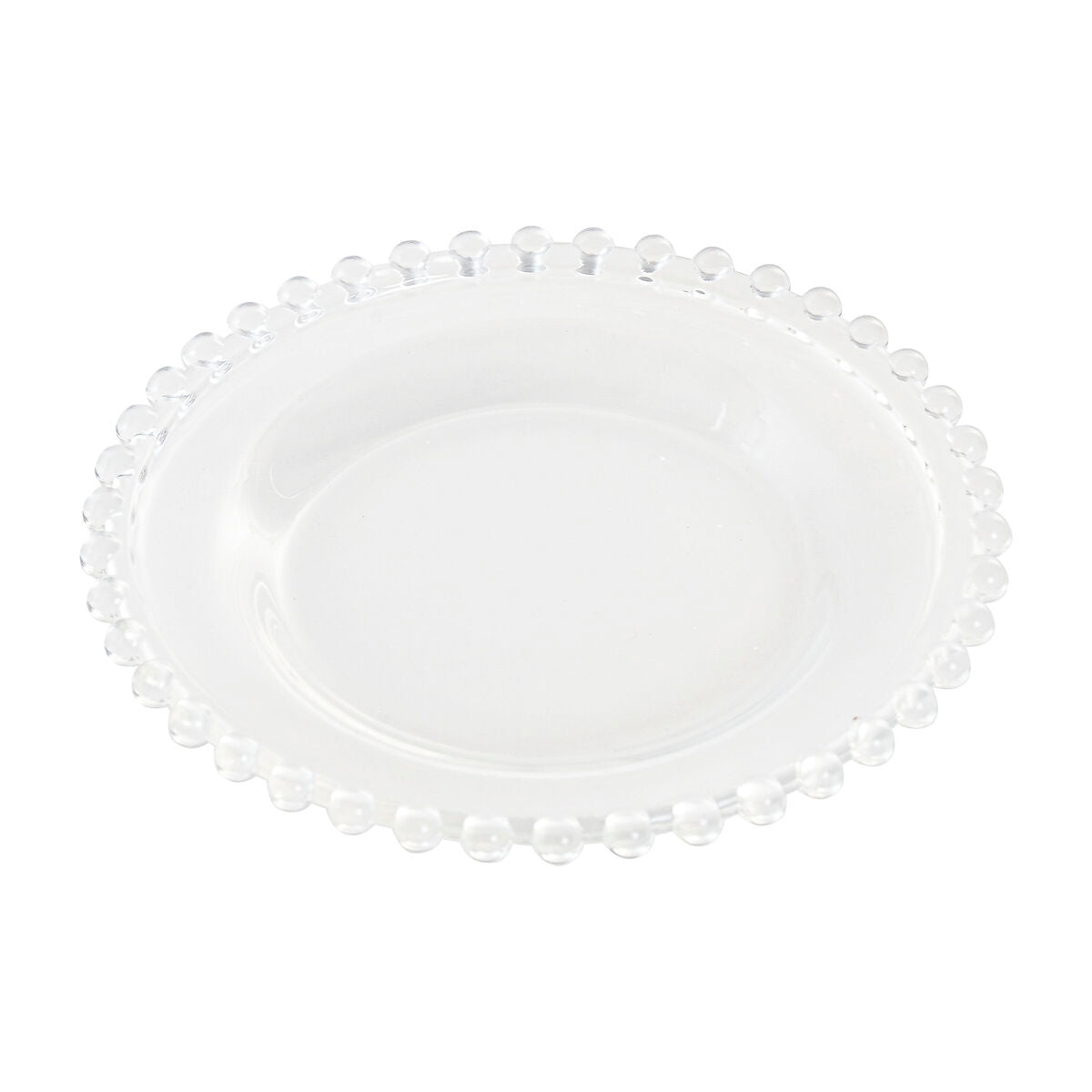 Kirkas kristallilautanen, koko 15,6 x 15,6 x 1,7 cm. Helmikoristeinen reuna ja matala profiili antavat lautaselle elegantin, koristeellisen ilmeen. Sopii pienten leivonnaisten, jälkiruokien ja yksittäisten annosten tarjoiluun sekä koristekäyttöön.