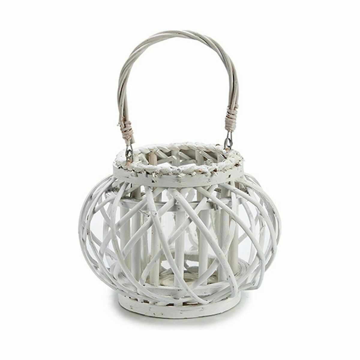 Valkoinen korikuvioitu kynttilälyhty lasisella sisäosalla, noin 30 × 19 × 25,5 cm. Tunnelmallinen sisustuslyhty, joka tuo pehmeää valoa pöydälle, ikkunalaudalle tai katettuun terassiin. Pakkaus sisältää 6 kpl.