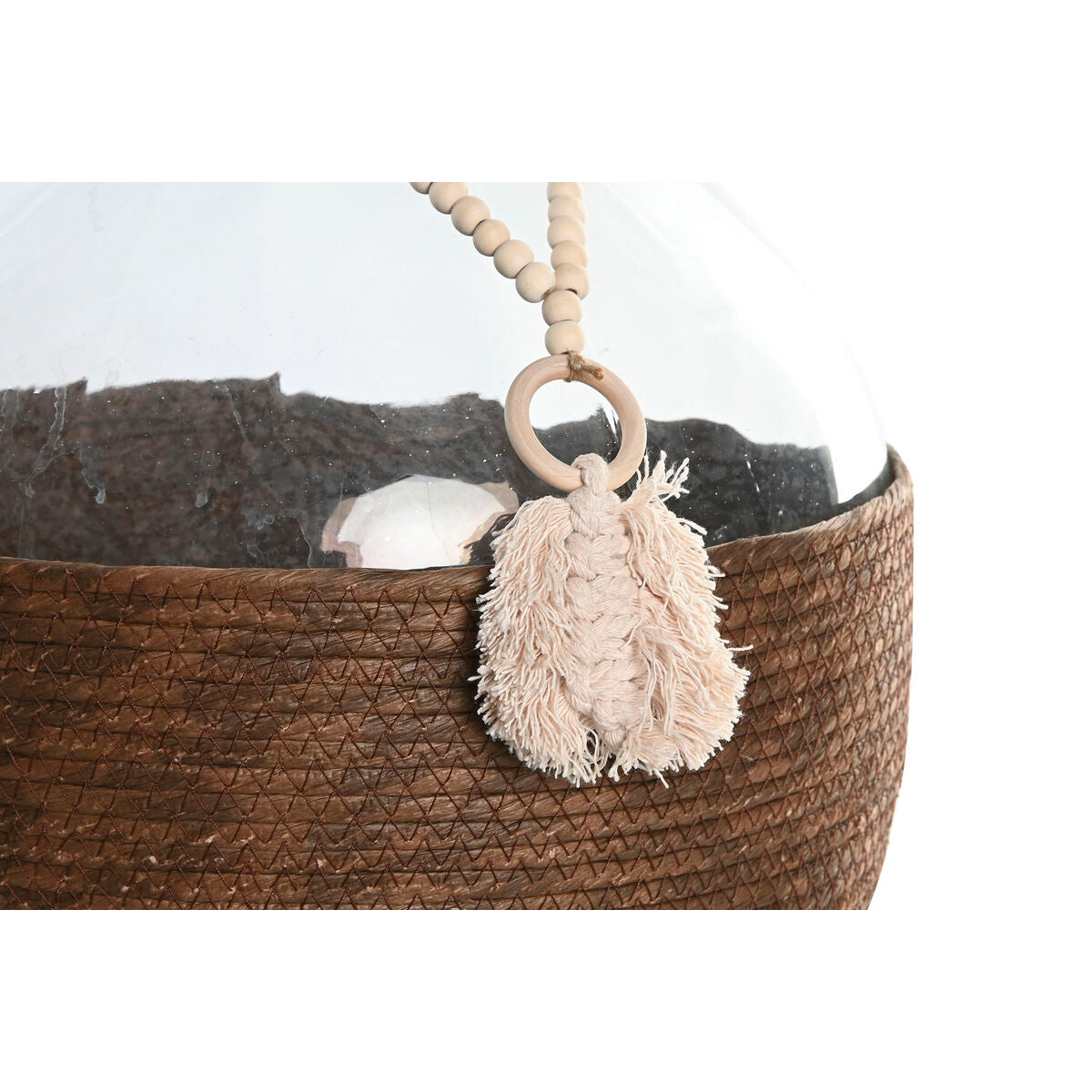 - Tummanruskea punottu kuori, kuitu – tuo lämpöä ja tekstuuria boho- tai siirtomaatyyliin, suojaa lasia ja pehmentää ilmettä.