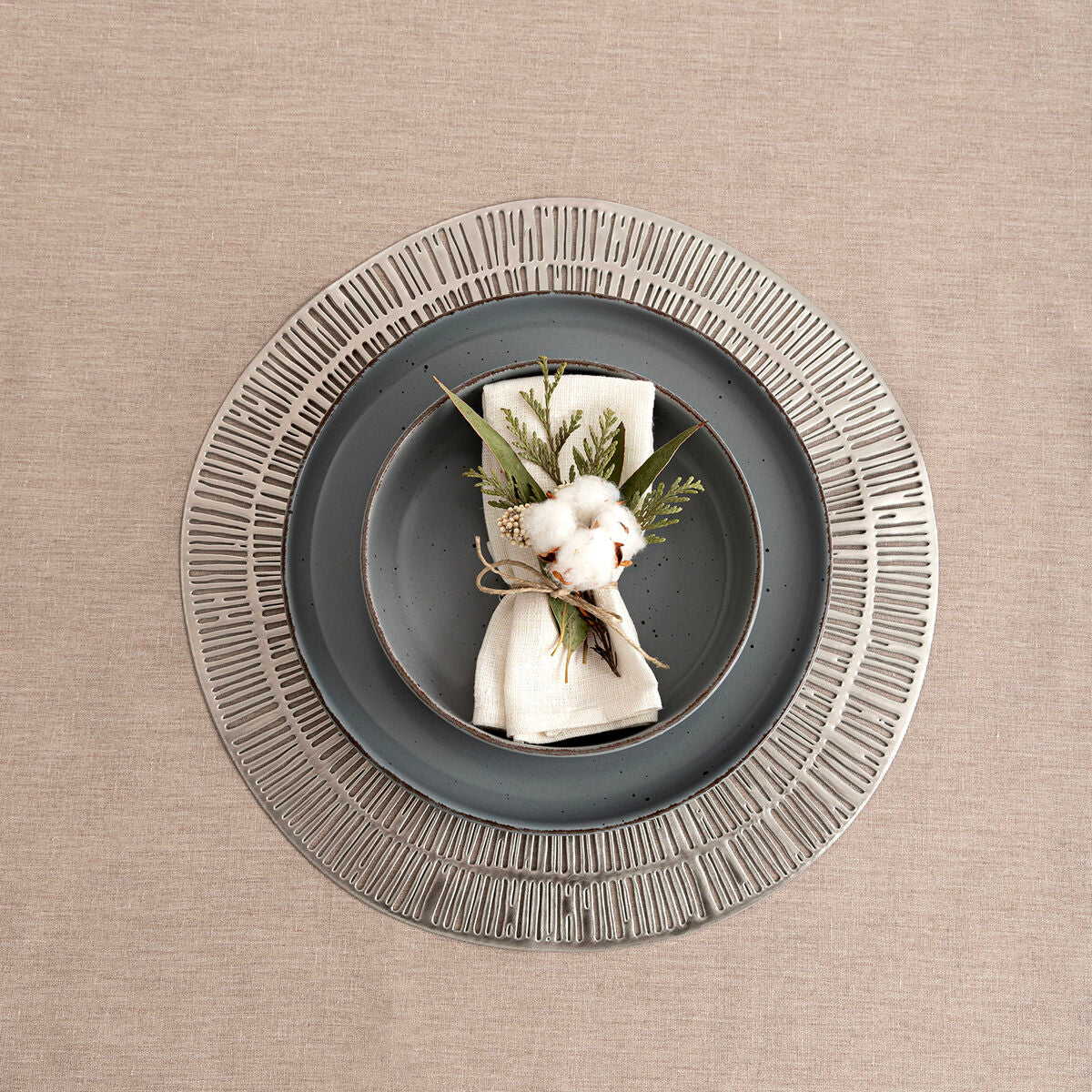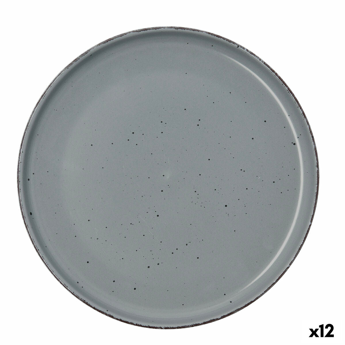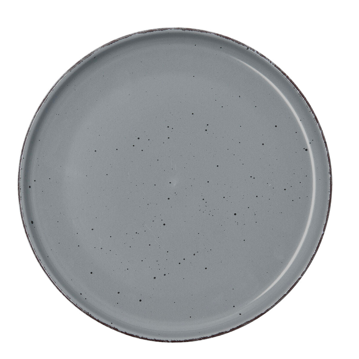 Litteä keramiikkalautanen halkaisijaltaan 26,5 cm, myyntierä 12 kpl. Moderni harmaa sävy ja pilkullinen lasite antavat rustiikkisen mutta hillityn ilmeen, tumma reunus viimeistelee kattausta. Pinottava muotoilu säästää tilaa ja helpottaa säilytystä.