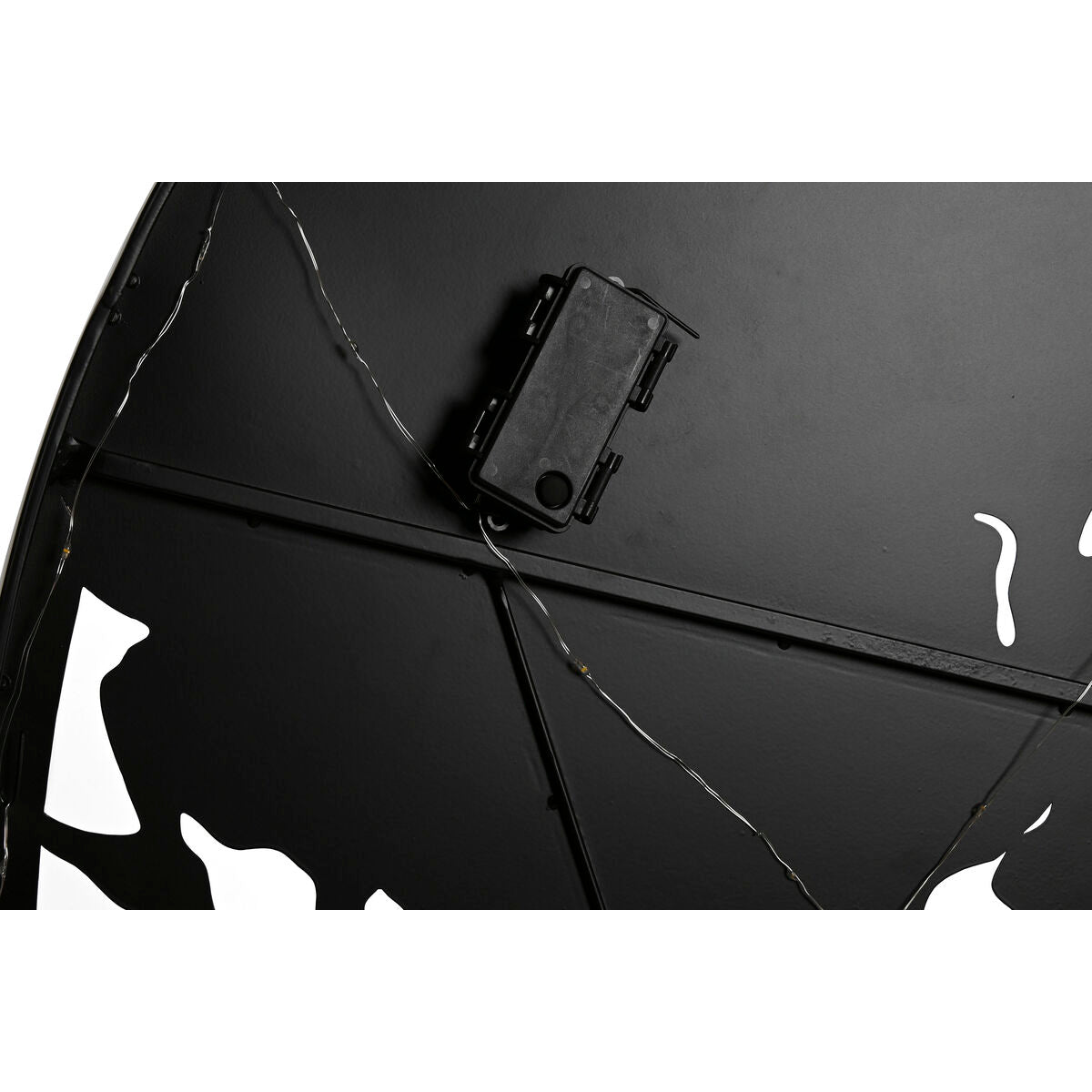 Metallinen maailmankartta seinäkoriste, joka luo loft-tyylisen ilmeen kotiin tai toimistoon. Kaksi pyöreää levymallia eri sävyissä (valkoinen, musta, pronssi) antavat modernin ja hieman kuluneen, teollisen ilmeen. Koristeessa on integroidut LED-valot, paristokäyttö (AA), mikä tekee siitä helposti sijoitettavan valaisuelementin seinälle ilman johtoja.