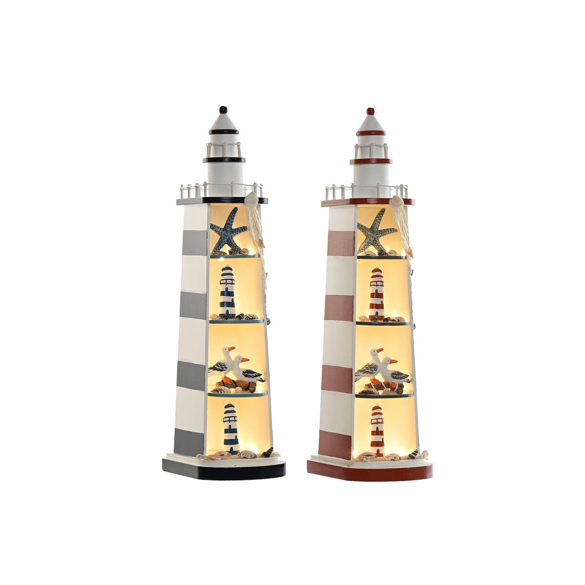 Majakan muotoinen puiset koristetornit, 2 kpl setti, joissa integroidut LED-valot. Sopii merelliseen sisustukseen, mökille tai olohuoneen tunnelmavalaistukseksi. Hakutermit: majakkakoriste, majakko koristevalaisin, merellinen sisustus, majakan muotoinen koriste.