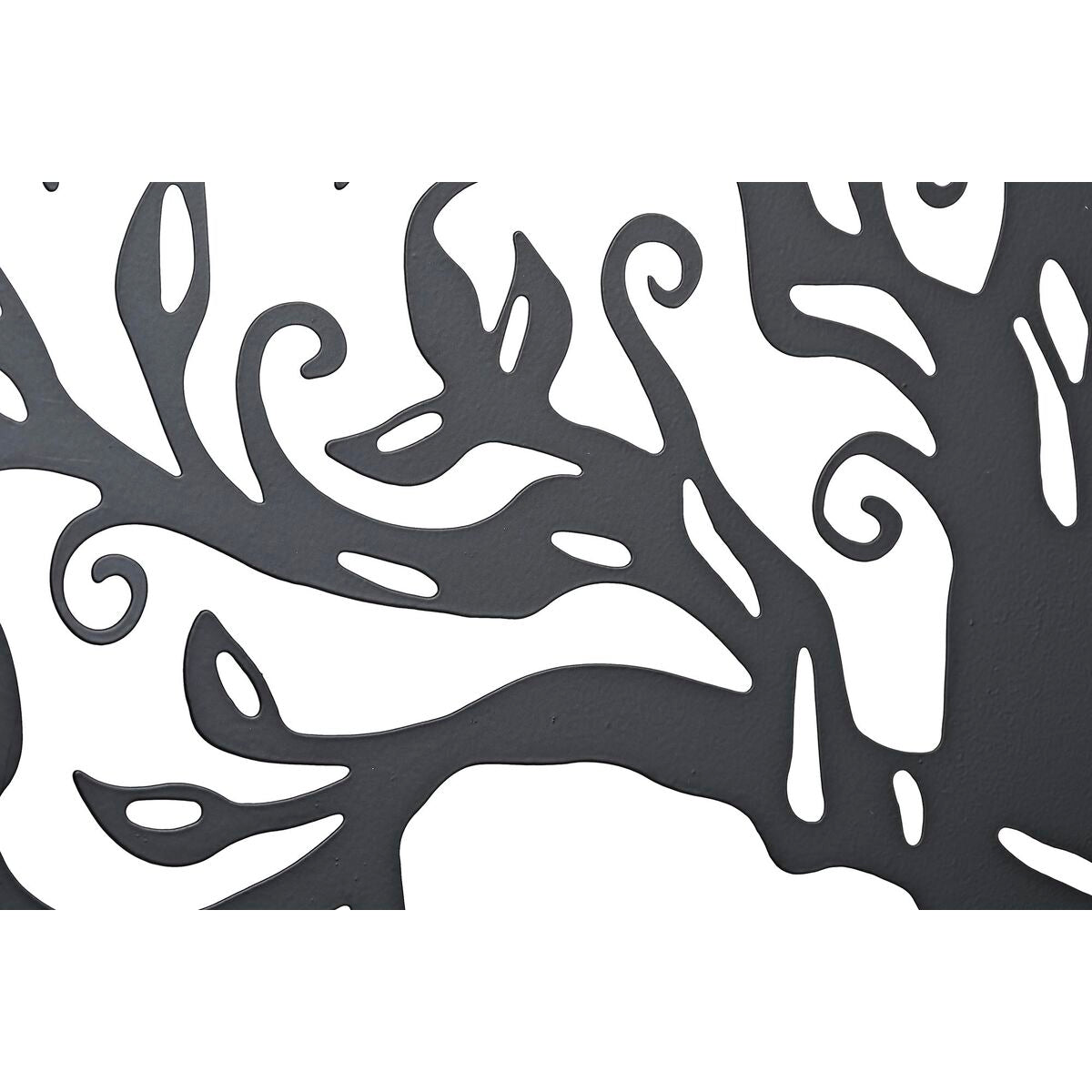 Pyöreä metallinen seinäkoriste, 2 kpl. Leikattu elämänpuu-aiheinen metallitaulu, jossa aurinko ja kuu muodostavat koristeellisen kontrastin mustan ja valkoisen kappaleen välillä. Sopii olohuoneeseen, makuuhuoneeseen tai käytävään tuomaan muotoa ja visuaalista syvyyttä.