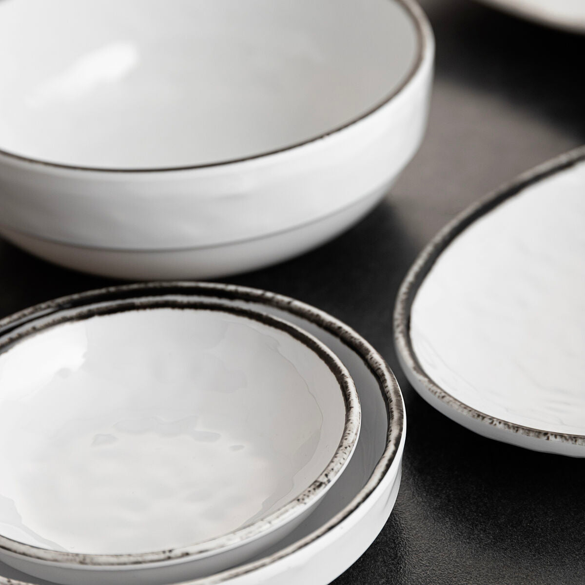 - Väri: valkoinen sisäosa & musta reuna – neutraali yhdistelmä sopii eri kattauksiin ja tarjoilutyyleihin.