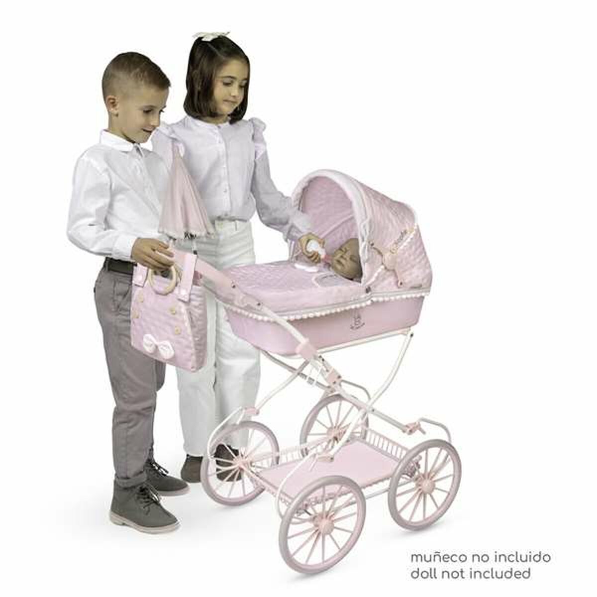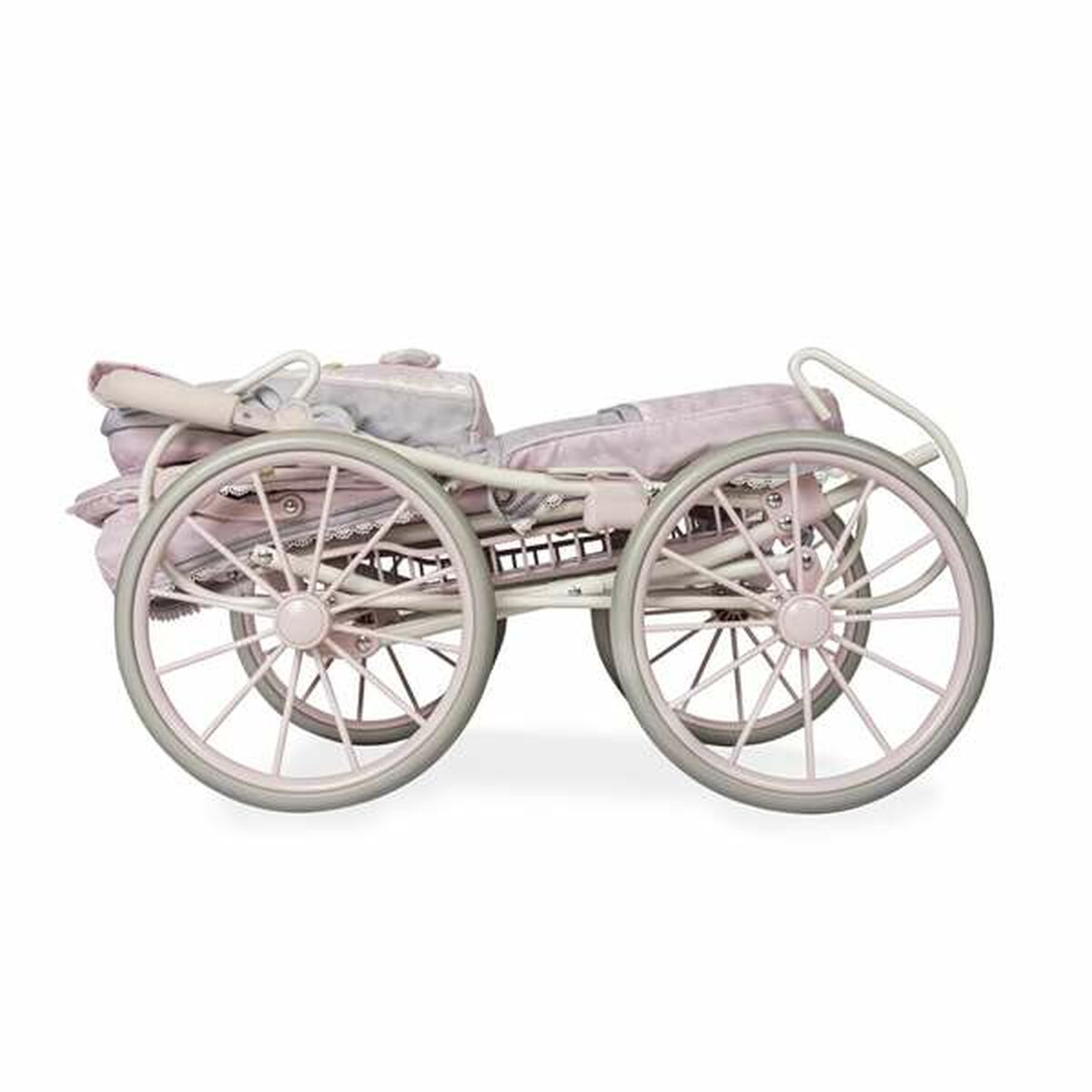 Nukkevaunut pastellivaaleanpunaisella kantokorilla, suunniteltu vauvanukkeleikkeihin 3+-vuotiaille. Klassinen retrotyylinen nukkevaunu yhdistää metallirungon ja muoviosat, mikä tekee siitä tukevan mutta kevyen työnnettävän lelun.