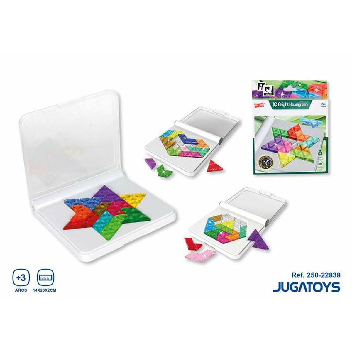 Monivärinen palapeli lapsille, suositusikä 3+. Kompakti matkakoko ja hauska älypeli, joka kehittää hahmottamista, keskittymistä ja kädentaitoja.