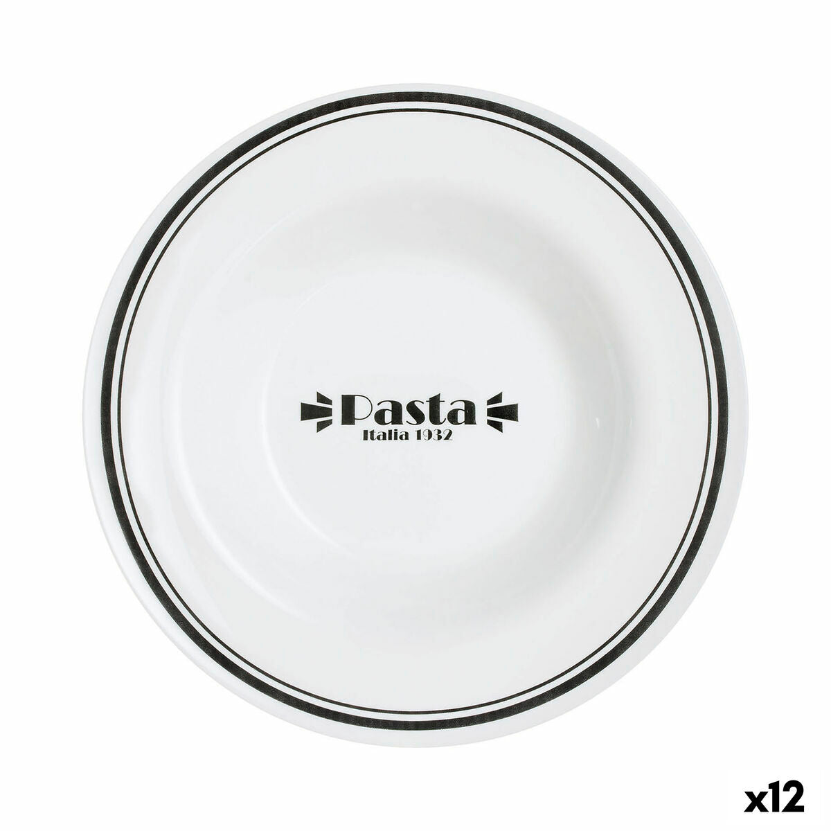 Syvä pastalautanen halkaisijaltaan 28,5 cm. Valkoinen lasipinta, mustat reunaviivat ja keskellä bistrohenkinen 'Pasta' -tekstielementti luovat klassisen kontrastin. Setti sisältää 12 kpl lautasta, jotka sopivat niin arkikäyttöön kuin tarjoiluun.