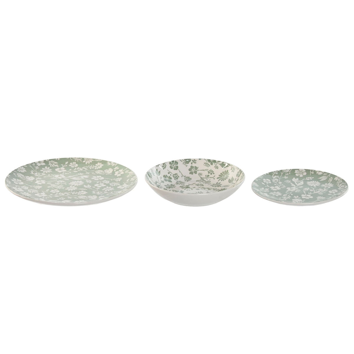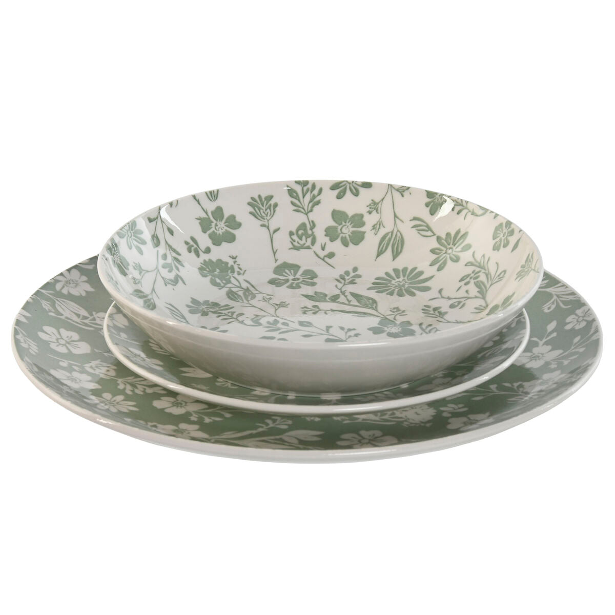 Posliiniastiasto 18 osaa, kukkakuvio valkoinen & vihreä, 27×27×2 cm, ruokailuun