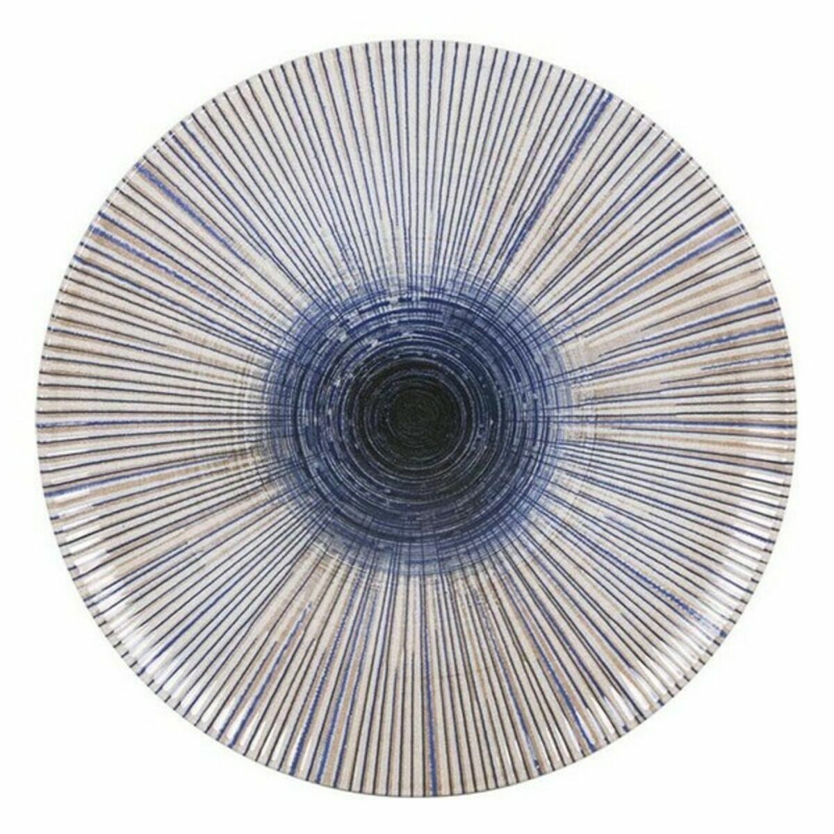 - Säteittäinen siniharmaa Irys-kuvio keskeltä reunalle — moderni, merihenkinen ilme joka korostaa annoksia.