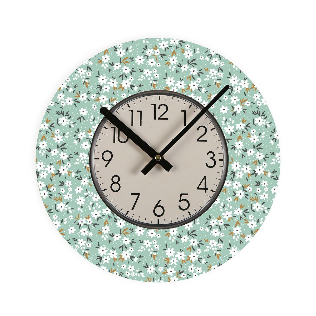 Hakusanat ja variantit: kukkakuvioinen seinäkello, puinen seinäkello, 30 cm seinäkello, pyöreä sisustuskello.