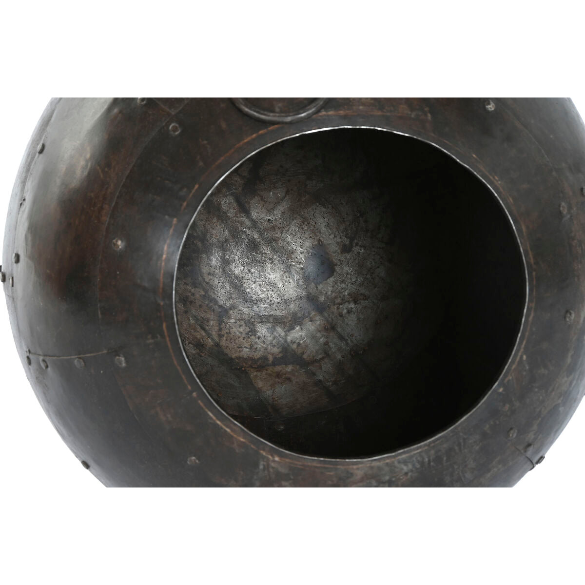 Pyöreä rautamaljakko, ruskealla patinalla ja niitatuilla paneeleilla. Suuri 40 x 40 x 41,5 cm koko tekee tästä näyttävän sisustuselementin lattialle tai suuremmalle pöydälle. Teollishenkinen ulkonäkö sopii rustiikkiin, skandinaaviseen tai loft-tyyliseen sisustukseen.