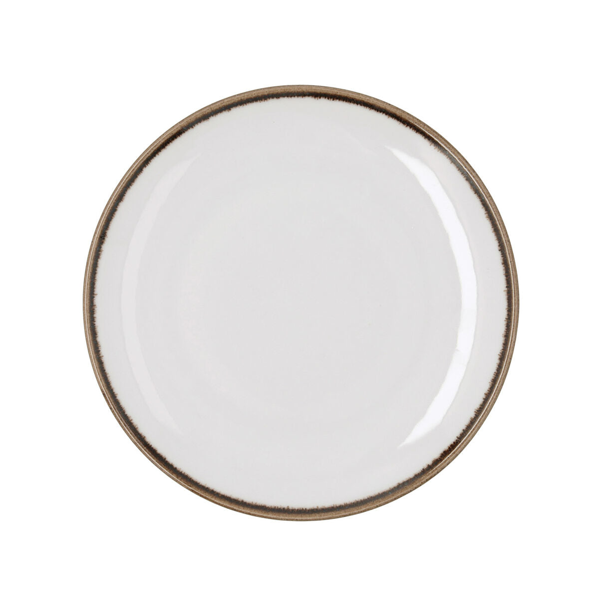Ruokalautanen Ø 25 cm keramiikka, 6 kpl, valkoinen rustiikkireuna ruokailuun