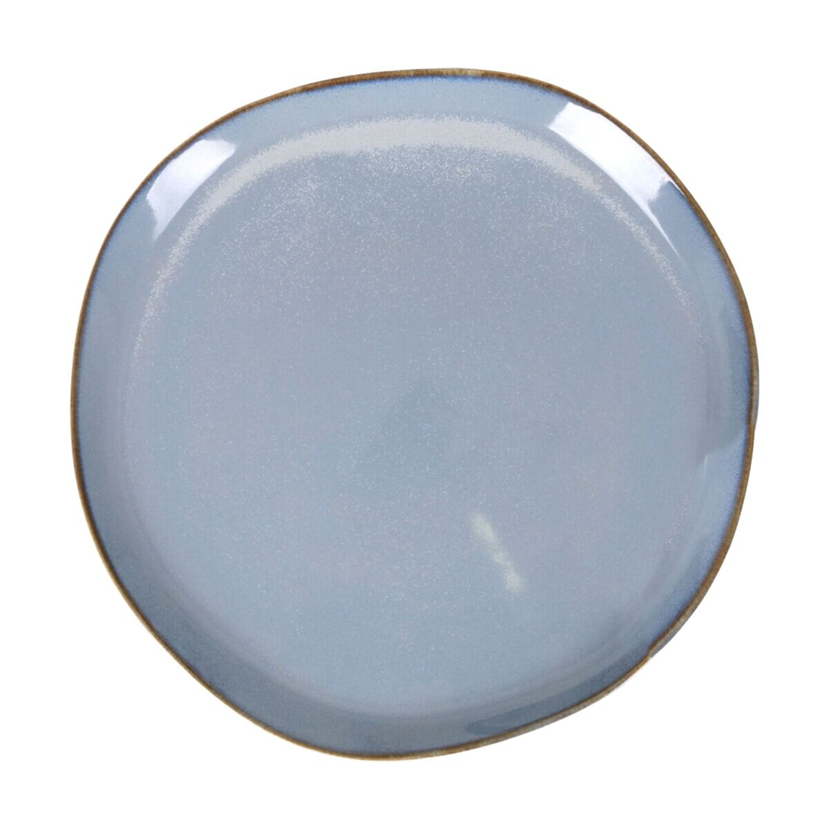 Ruokalautanen Ø 28 cm, 6 kpl setti sinisiä litteitä lautasia, suunniteltu monipuoliseen käyttöön arkeen ja juhlaan. Hellävarainen sininen lasite ja tumma reunaviiva antavat modernin mutta lämminhenkisen, käsityönomaisen vaikutelman.