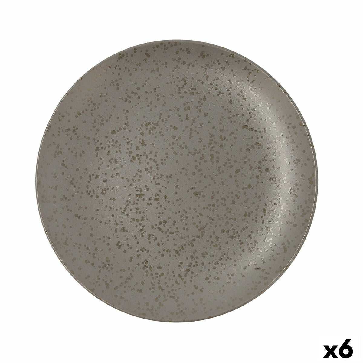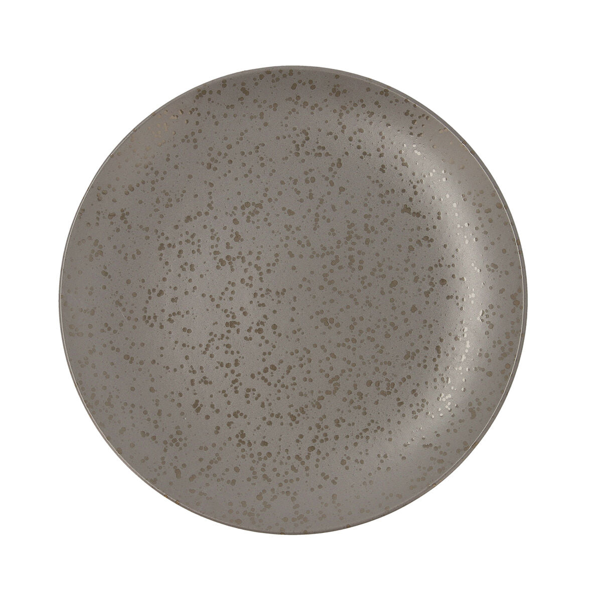 Litteä ruokalautanen Ø 31 cm harmaalla, pilkullisella keramiikkapinnalla. Myydään 6 kappaleen setissä. Soveltuu arkeen ja juhlaan sekä tarjoiluun ja uuniruokiin.