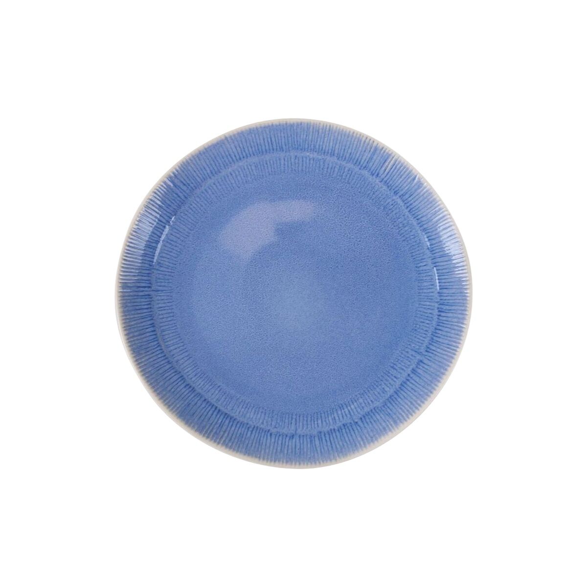 - sininen lasitus & teksturoitu reuna – rauhallinen sävy ja näyttävä yksityiskohta kattaukseen
