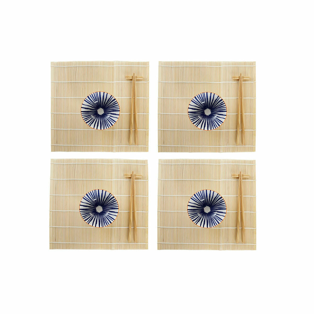 Sushisetti 16 osaa, keramiikka & bambu, sinivalkoinen, 14,5x14,5x31 cm