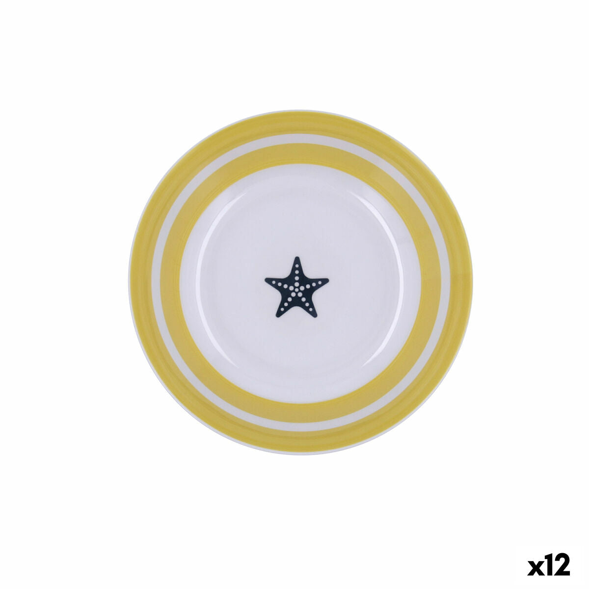 - Monivärinen design — keltaraitainen reuna ja keskuskuvio lisäävät ilmettä kattausta varten.
