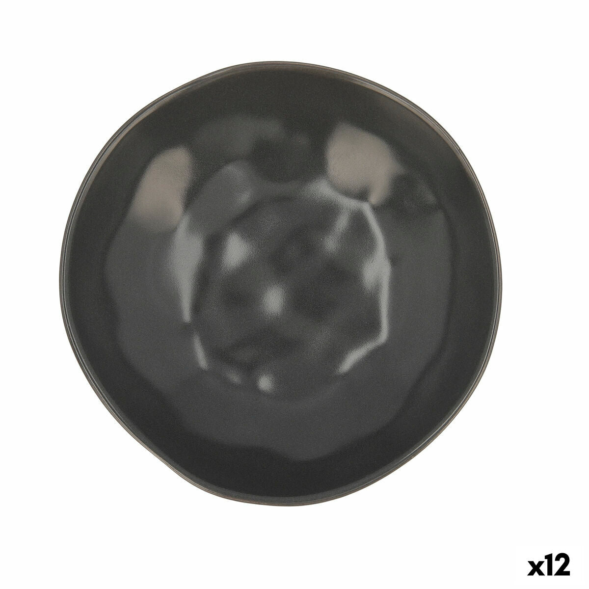 Syvä lautanen 22 cm, musta keramiikka - pinottava, 12 kpl, kotikeittiöön