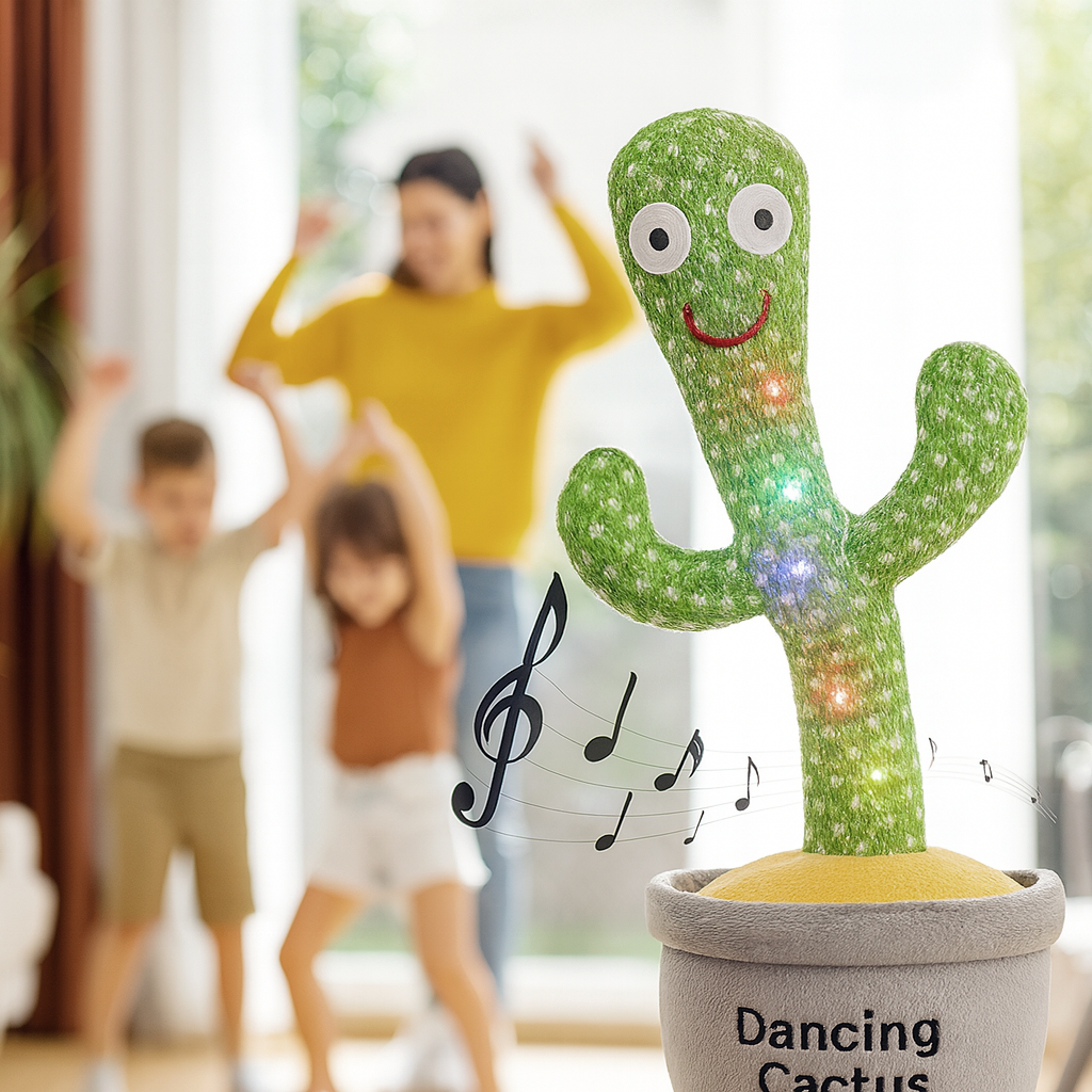 Ladattava tanssiva ja puhuva kaktus on hauska musiikkilelu, joka syttyy monivärisin LED-valoin, tanssii rytmiin ja toistaa puheen. Se viihdyttää lapsia ja koko perhettä kotona, juhlissa ja arjen leikkihetkissä.