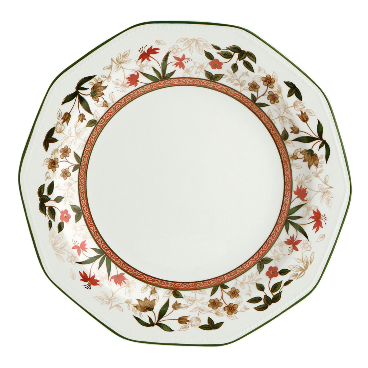 - koristeellinen reunus – kukkakuvio ja väritys tuovat näyttävyyttä kattaukseen