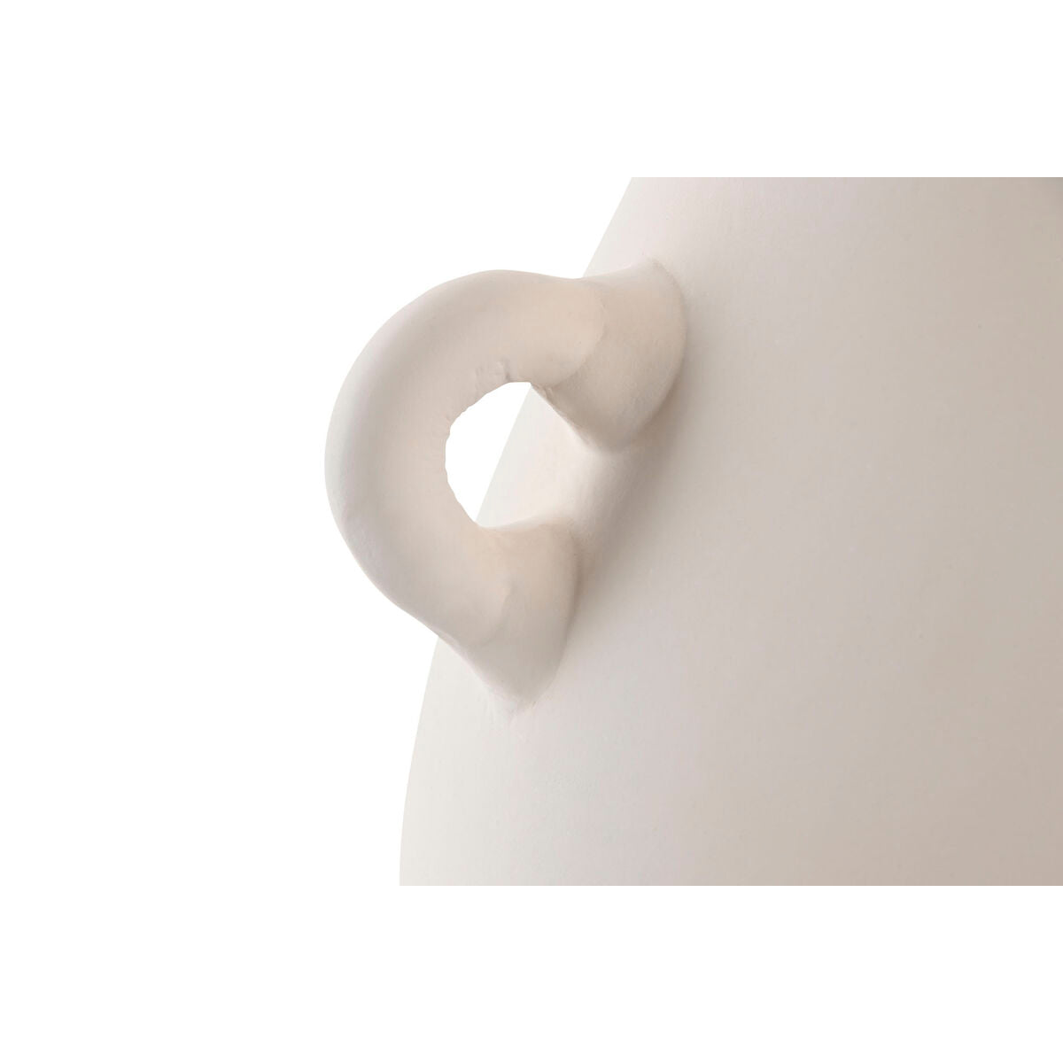 Beige terrakottamaljakko perinteisessä tyylissä. Pyöreä, leveä vatsa ja kapea suuaukko, molemmilla puolilla pienet lenkkikahvat. Mitat noin 29 x 25 x 25 cm.