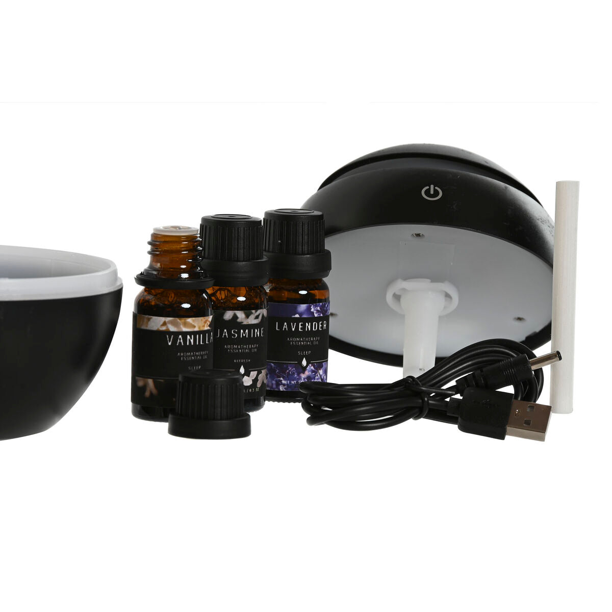 Eteerinen öljy diffuuseri USB - hajotin & kostutin 10 ml, 4 kpl, musta, kotiin