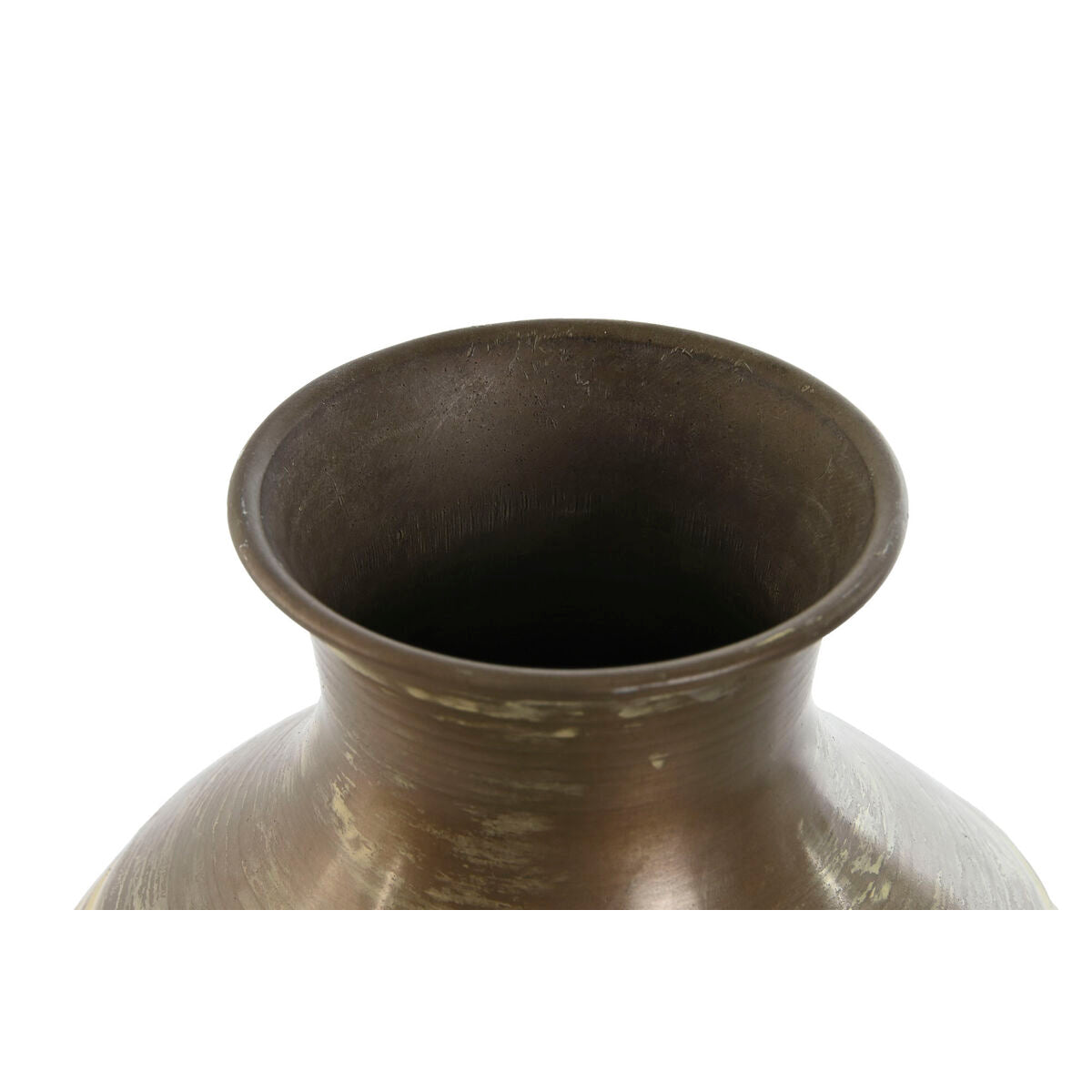 Vihreä alumiinimaljakko, käsintehty ja teksturoitu pinta. Maljakossa on kapea kaula ja levenevä runko, mitat noin 18 x 18 x 30 cm. Tyylikäs, patinoitu vihreä sävy yhdessä raita- ja pistekoristelun kanssa tekee siitä näyttävän sisustuselementin.